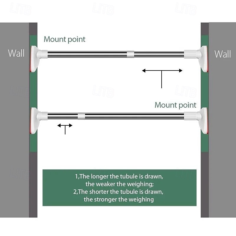 Clothing Hanger Telescopic Rod No Drilling Adjustable Closet Hanging Rod Curtain Shower Rod Extendable Support Pole for Bathroom Bedroom Laundry Room Drying and Storage 6