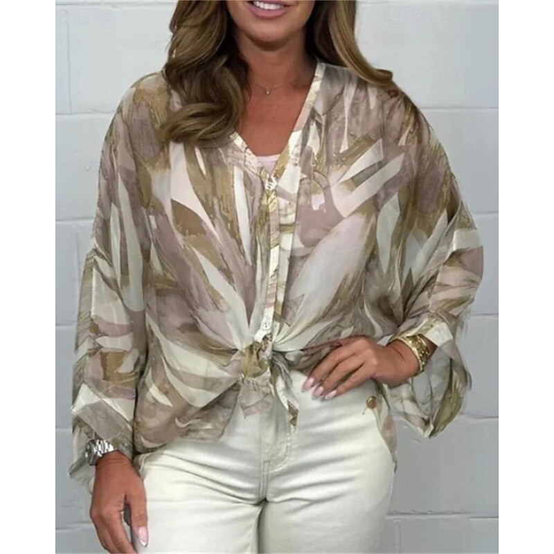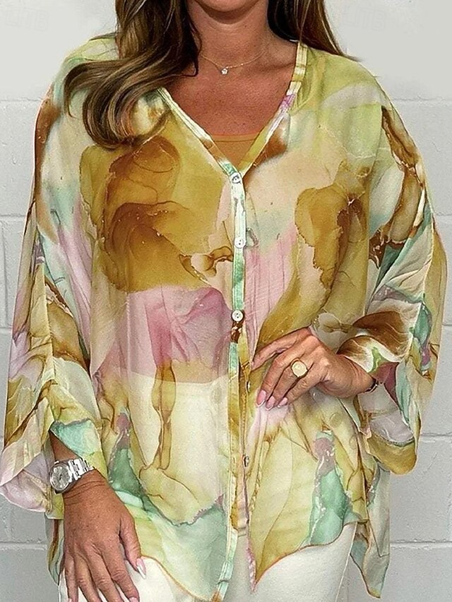 More information about Women's Shirt Chiffon Tops Floral Stylish Modern Long Sleeve Shirt Collar Regular Tops Daily Holiday Buttons Print Yellow Pink Royal Blue Green Khaki Spring Fall