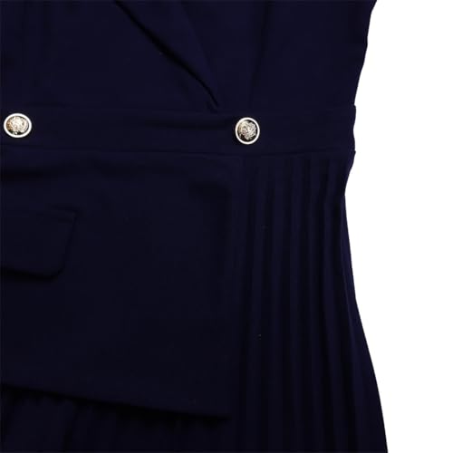 More information about Women's Lapel Neck Breasted Blazer Dress Business Elegant 3/4 Sleeve Solid Color Pleated Midi Dresses