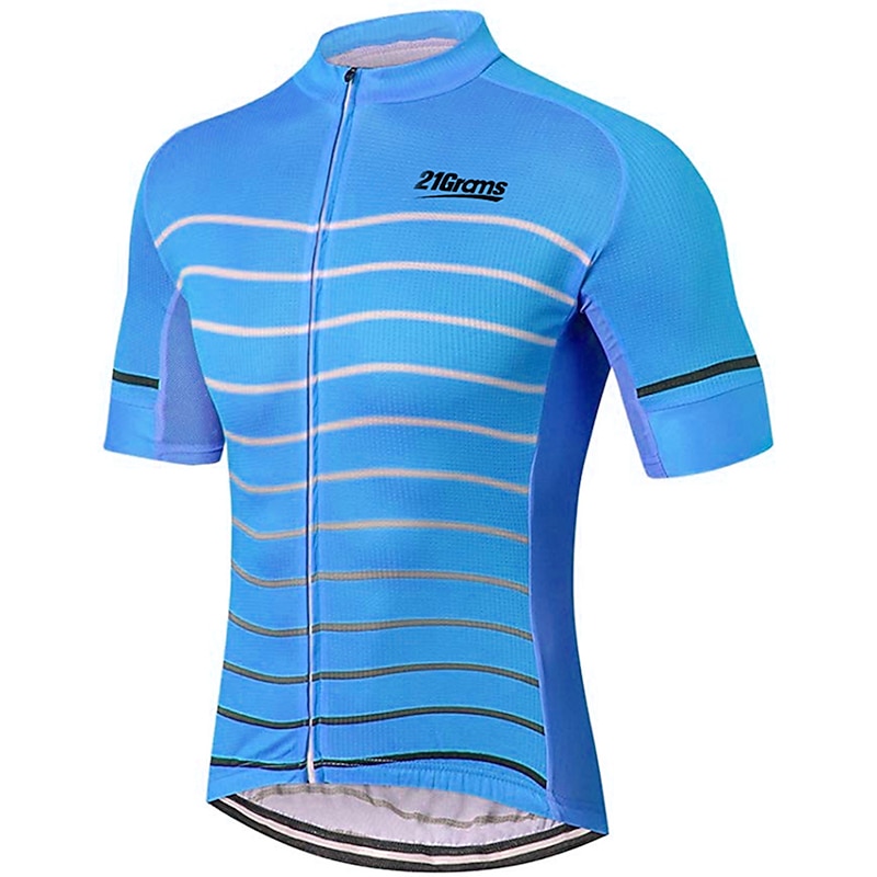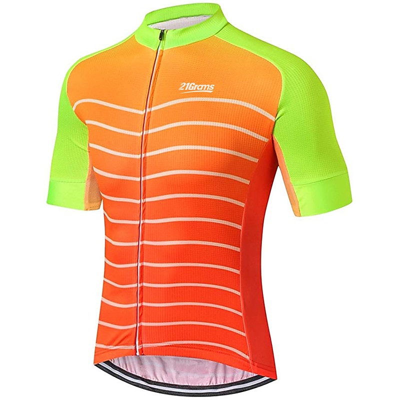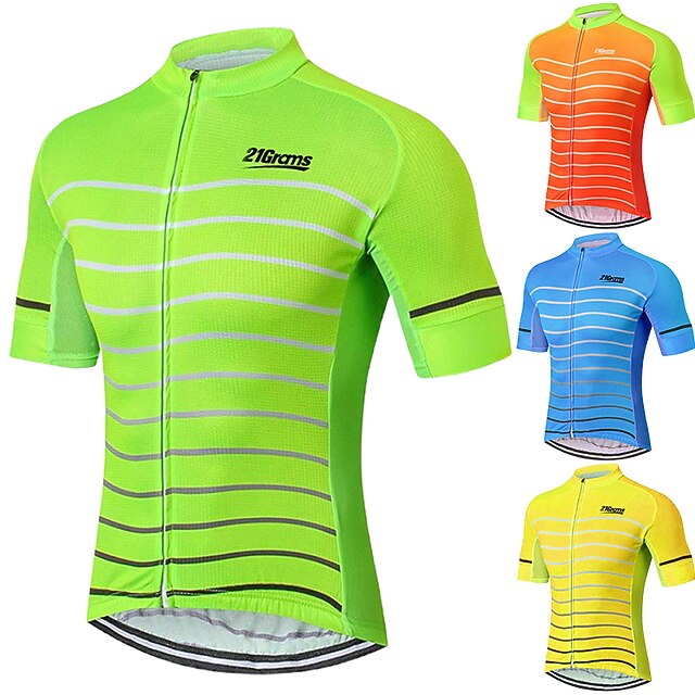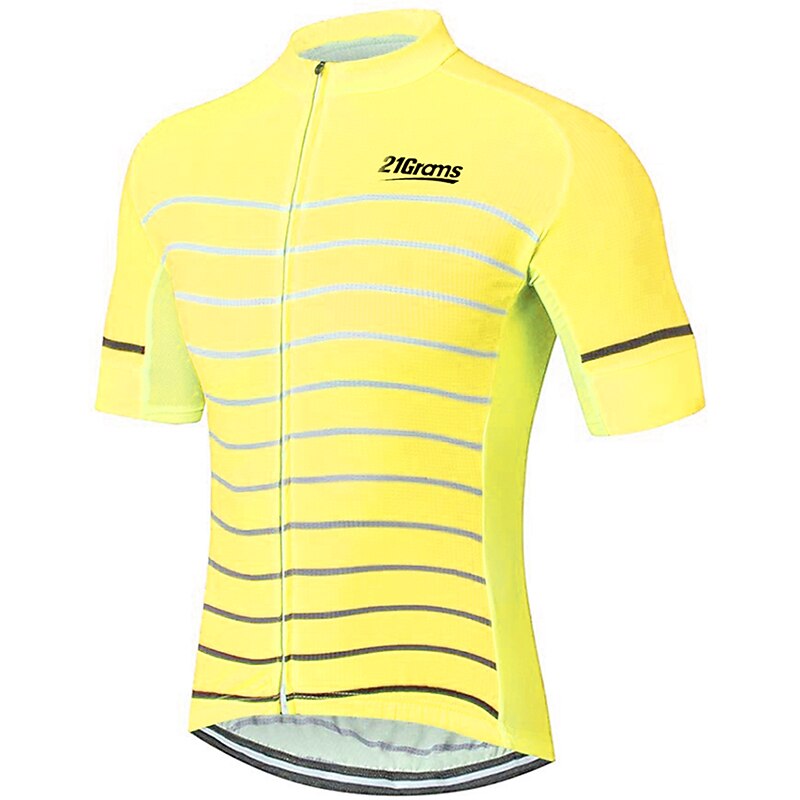 Men's Cycling Jersey Solid Color Stripes Patterned Short Sleeve Bike Jersey Top with 3 Rear Pockets Mountain Bike MTB Road Bike Cycling UV Resistant Quick Dry Back Pocket Sweat-Wicking Sports Yellow 21