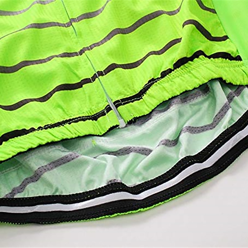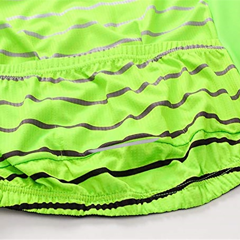 Highlights - "Conveniently store your essentials with 3 classic back pockets" - "Stay dry and comfortable with breathable, quick-dry fabric" - "No slipping or sliding with anti-slip silicone hem grip" - "Be seen and safe with reflective strip for visibility in dark conditions" - "Made with stretchy spandex for a comfortable and secure fit" - "Ideal for both mountain biking and road cycling" - "UV resistant material for added protection" - "Stylish stripe design adds a touch of flair to your cycling gear"