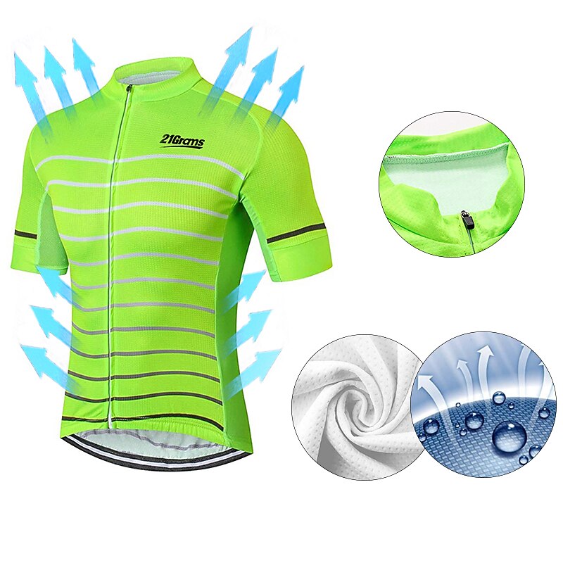 More information about Men's Cycling Jersey Solid Color Stripes Patterned Short Sleeve Bike Jersey Top with 3 Rear Pockets Mountain Bike MTB Road Bike Cycling UV Resistant Quick Dry Back Pocket Sweat-Wicking Sports Yellow