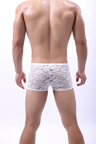 Men's Lace Boxer Briefs Underwear Bulge Pouch Lingerie See Through Booty Shorts Underpanties 6