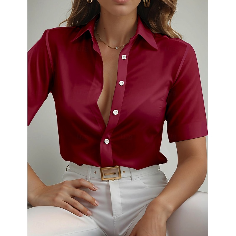 This Women's Shirt Long Sleeve Button Down Blouse Solid Color Graphic Daily sophisticated Short Sleeve Shirt Collar Regular Tops Daily Black White Wine Navy Blue Royal Blue Summer Spring combines elegant design with practical functionality. Every detail has been carefully considered to ensure you get the best possible experience. The finest construction means this product will serve you well for years to come.