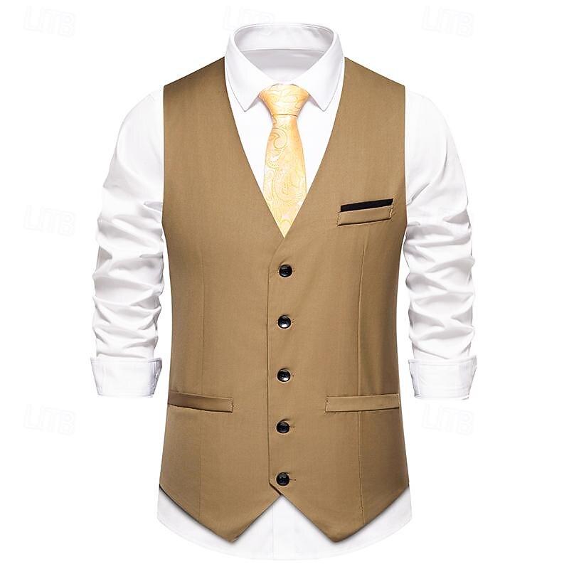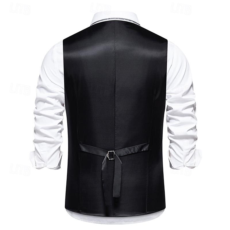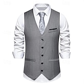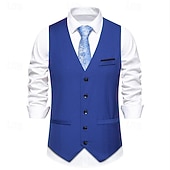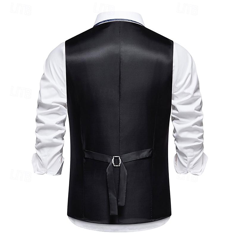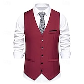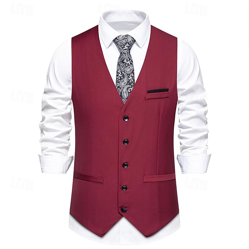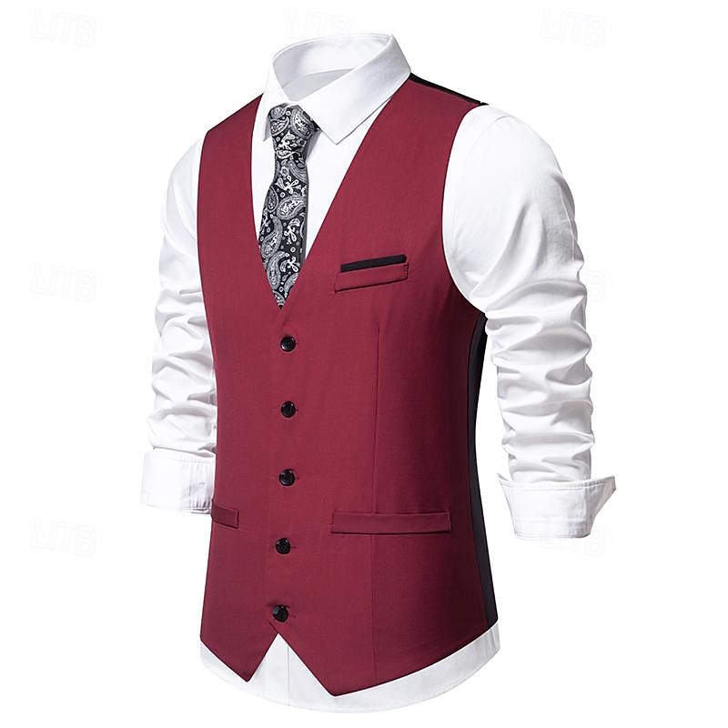 Highlights [Fabric] : Crafted from a high-quality polyester blend, this men's vest ensures comfort and durability. The smooth fabric provides a sleek and polished appearance suitable for various occasions. [Fit] : Designed with a regular fit, this vest complements the natural shape of the torso without being restrictive. The sleeveless design makes it an ideal layering piece for both spring and fall seasons. [Design Highlights] : This vest features a classic single-breasted placket with sleek black buttons, adding a touch of elegance. The sharp V-neckline enhances the sophisticated look, while two front welt pockets and a single chest pocket provide both style and functionality. The vest is available in a range of understated colors like Burgundy, Black, Sky Blue, Gray, Dark Navy, and Khaki, allowing for versatile styling options. [Occasions] : Perfect for daily wear, vacations, and going out, this vest is a versatile addition to any wardrobe. Its vintage and casual fashion style makes it suitable for both professional and leisurely settings. [Size Range] : Available in sizes S, M, L, XL, and 2XL, this vest caters to a wide range of body types, ensuring a perfect fit for every wearer.