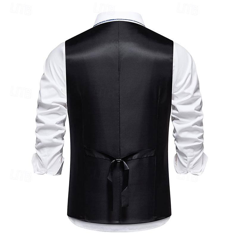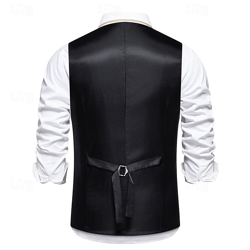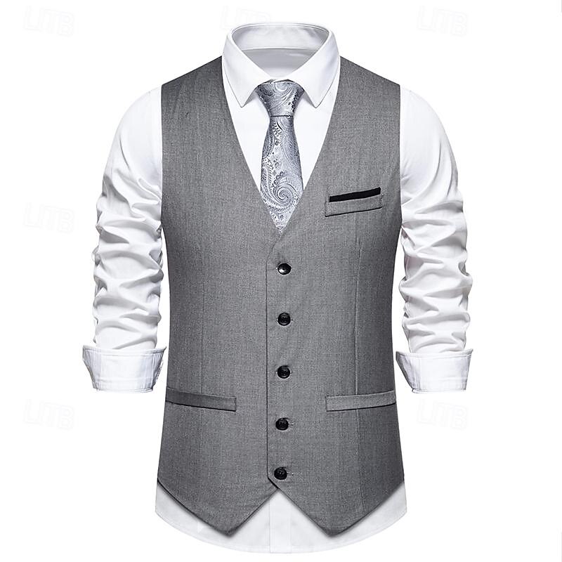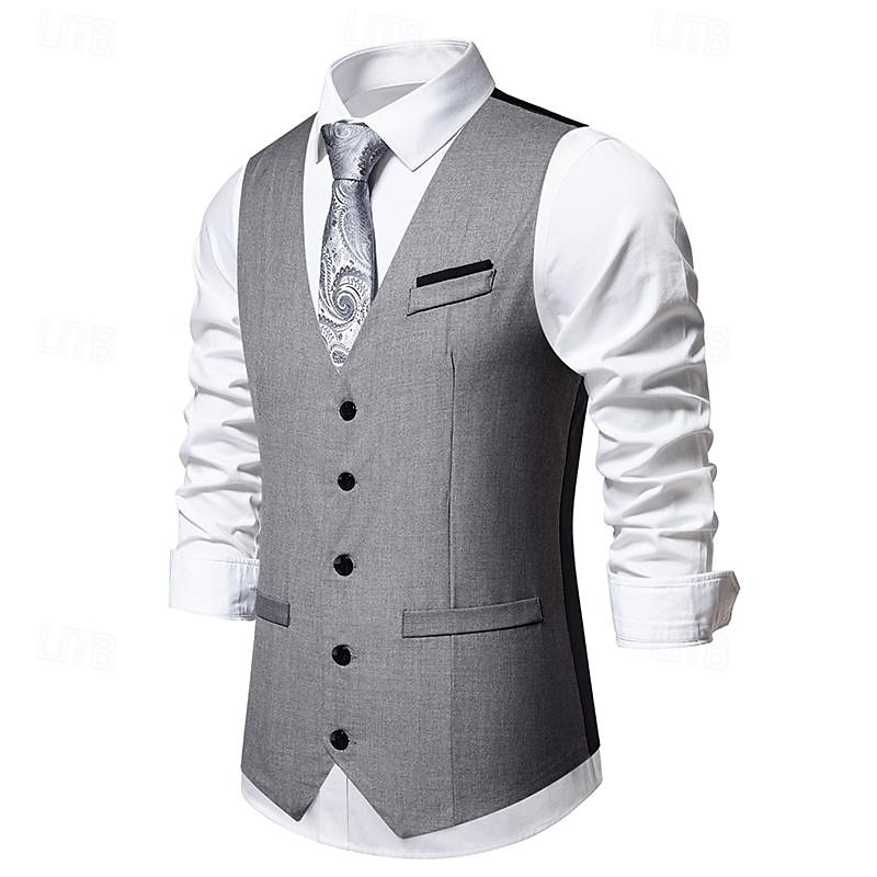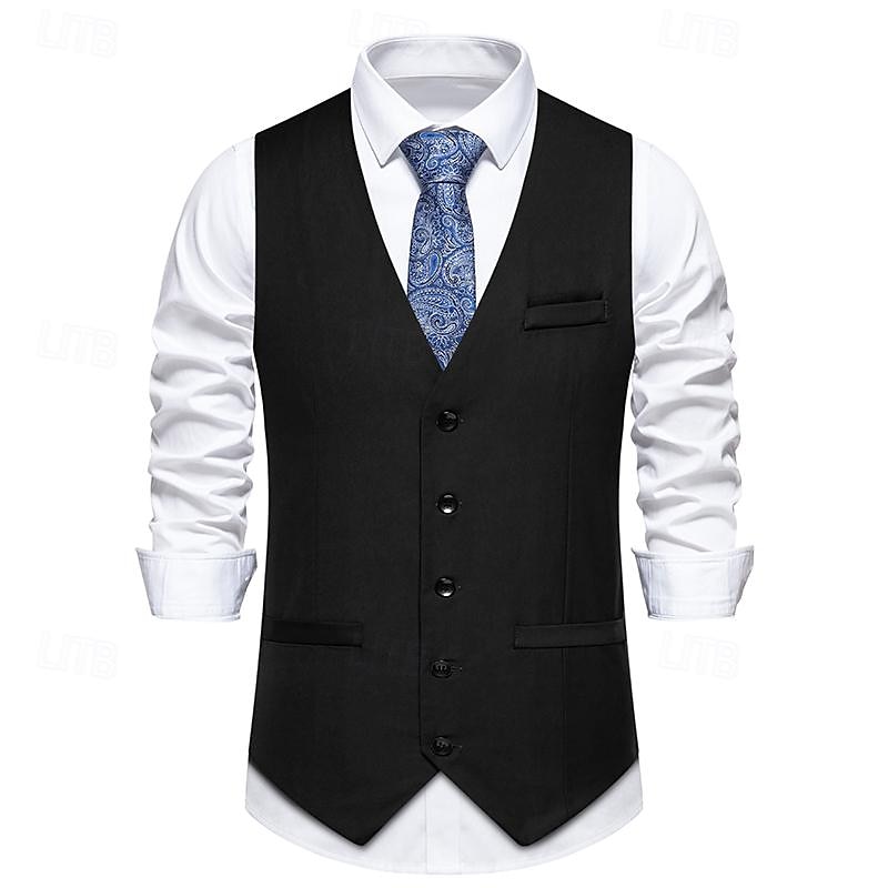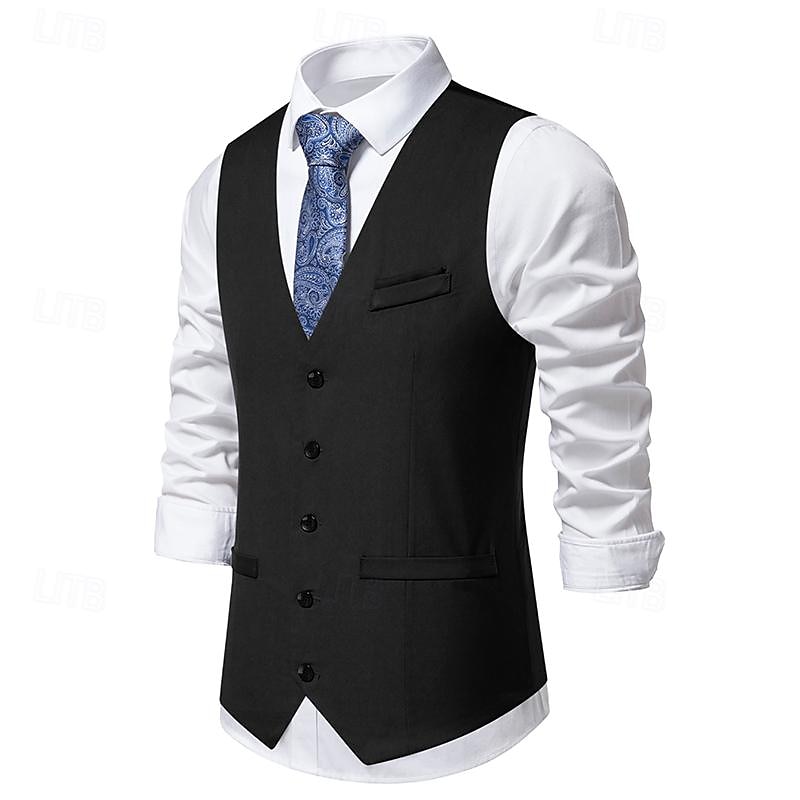 Highlights [Fabric] : Crafted from a high-quality polyester blend, this men's vest ensures comfort and durability. The smooth fabric provides a sleek and polished appearance suitable for various occasions. [Fit] : Designed with a regular fit, this vest complements the natural shape of the torso without being restrictive. The sleeveless design makes it an ideal layering piece for both spring and fall seasons. [Design Highlights] : This vest features a classic single-breasted placket with sleek black buttons, adding a touch of elegance. The sharp V-neckline enhances the sophisticated look, while two front welt pockets and a single chest pocket provide both style and functionality. The vest is available in a range of understated colors like Burgundy, Black, Sky Blue, Gray, Dark Navy, and Khaki, allowing for versatile styling options. [Occasions] : Perfect for daily wear, vacations, and going out, this vest is a versatile addition to any wardrobe. Its vintage and casual fashion style makes it suitable for both professional and leisurely settings. [Size Range] : Available in sizes S, M, L, XL, and 2XL, this vest caters to a wide range of body types, ensuring a perfect fit for every wearer.