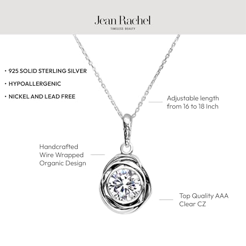 HOT ! JEAN RACHEL JEWELRY 925 Sterling Silver Necklace for Women - Wire Wrap with Bezel Set Cubic Zirconia Vintage Design - Hypoallergenic, Lead & Nickel Free - Artisan Handcrafted Statement Necklace