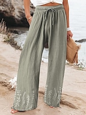 More information about Women's Wide Leg Pants Trousers Palazzo Pants Fashion Streetwear Full Length High Waist Flower Elastic Waist Drawstring Print Breathability Comfortable Street Daily Wear Going out Gray Spring Fall