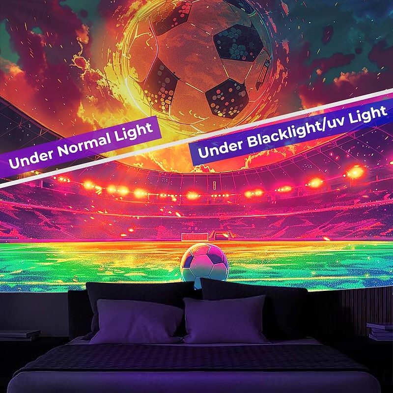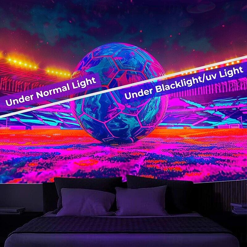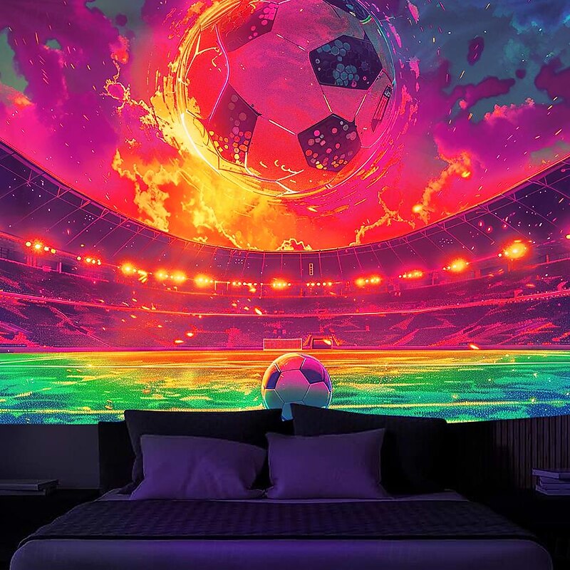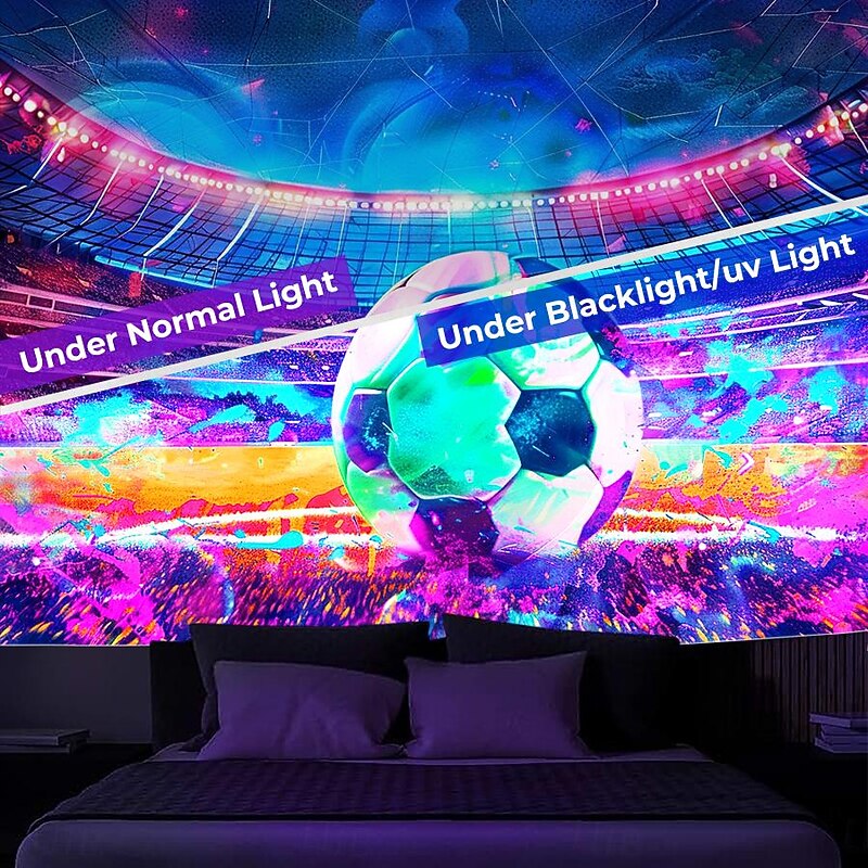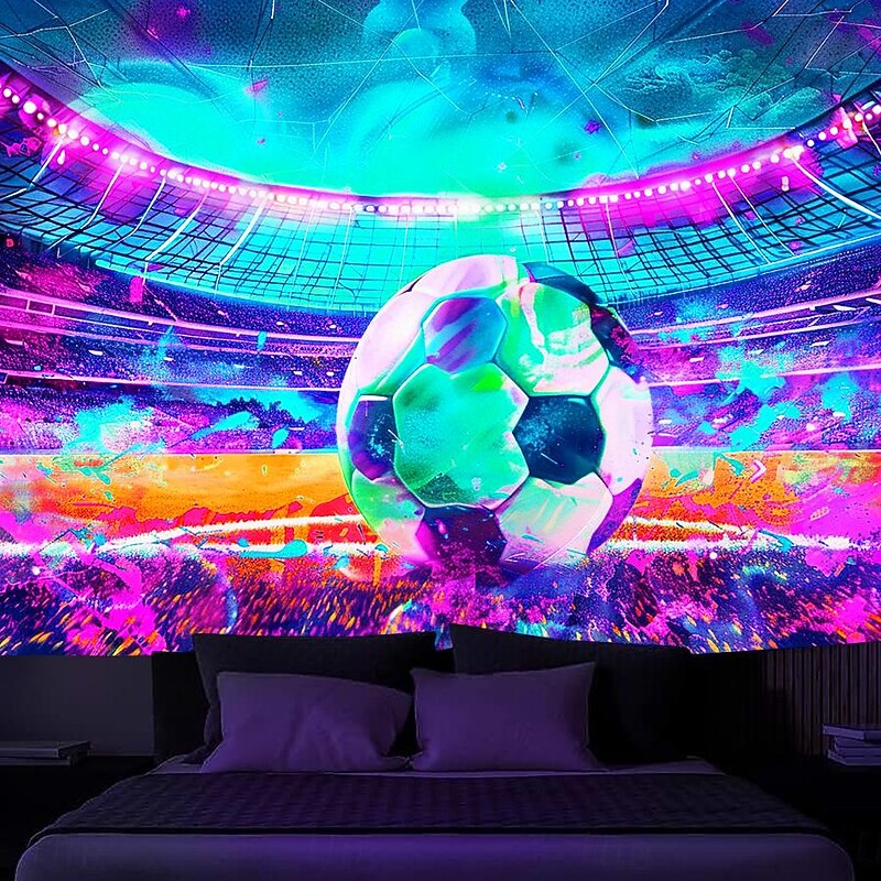 More information about UEFA EURO 2025 Blacklight Tapestry UV Reactive Glow in the Dark Majestic Stadium Football Trippy Misty Hanging Tapestry Wall Art Mural for Living Room Bedroom