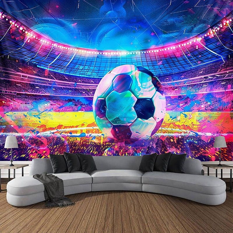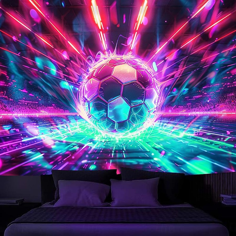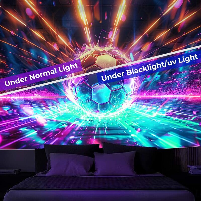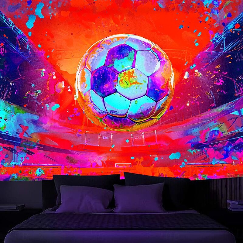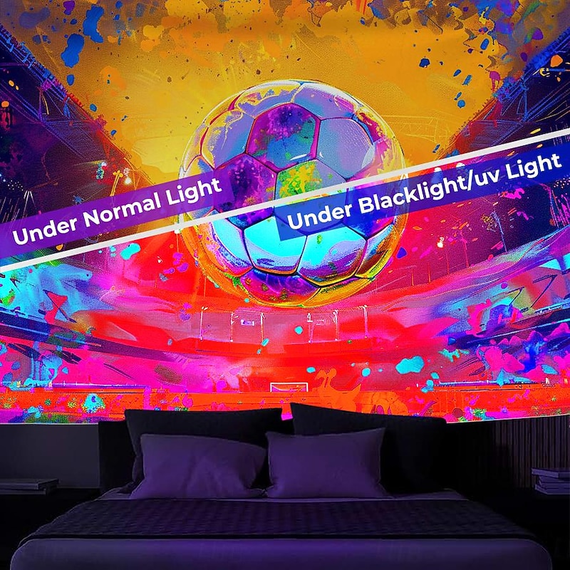 More information about UEFA EURO 2025 Blacklight Tapestry UV Reactive Glow in the Dark Majestic Stadium Football Trippy Misty Hanging Tapestry Wall Art Mural for Living Room Bedroom
