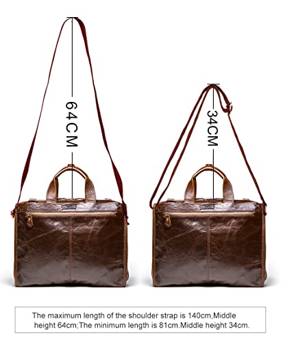• Genuine Leather Mens Business Briefcase, Casual Bags Mens One Shoulder Messenger Laptop Bag, ID Bag, Tablet Bag