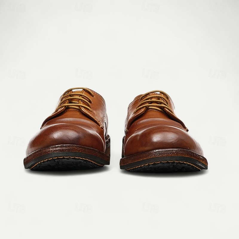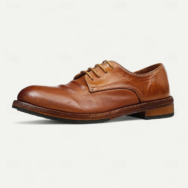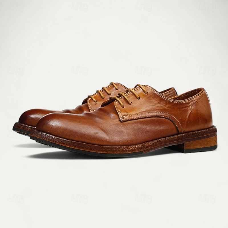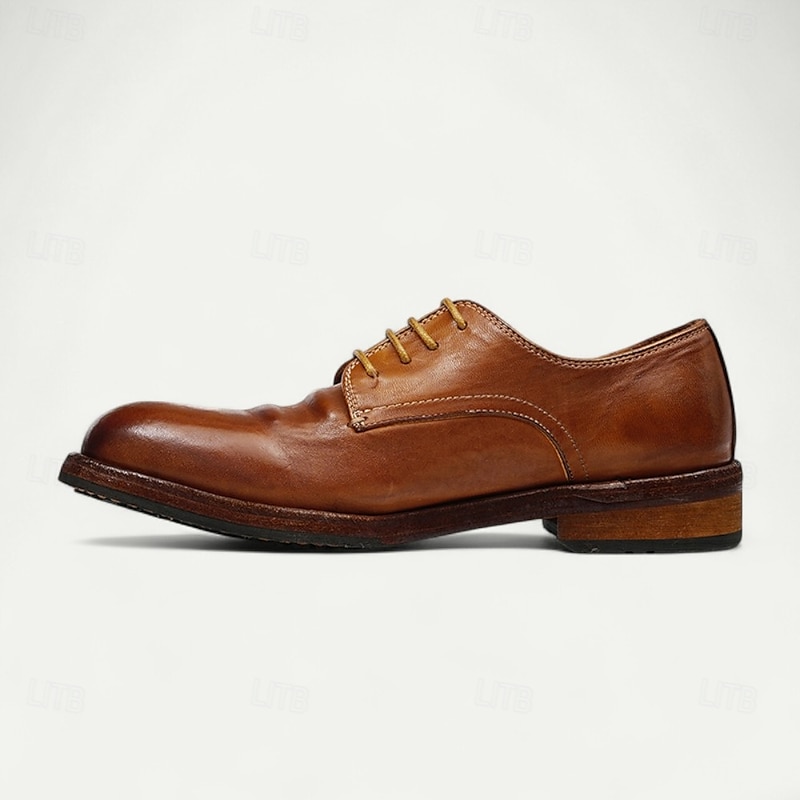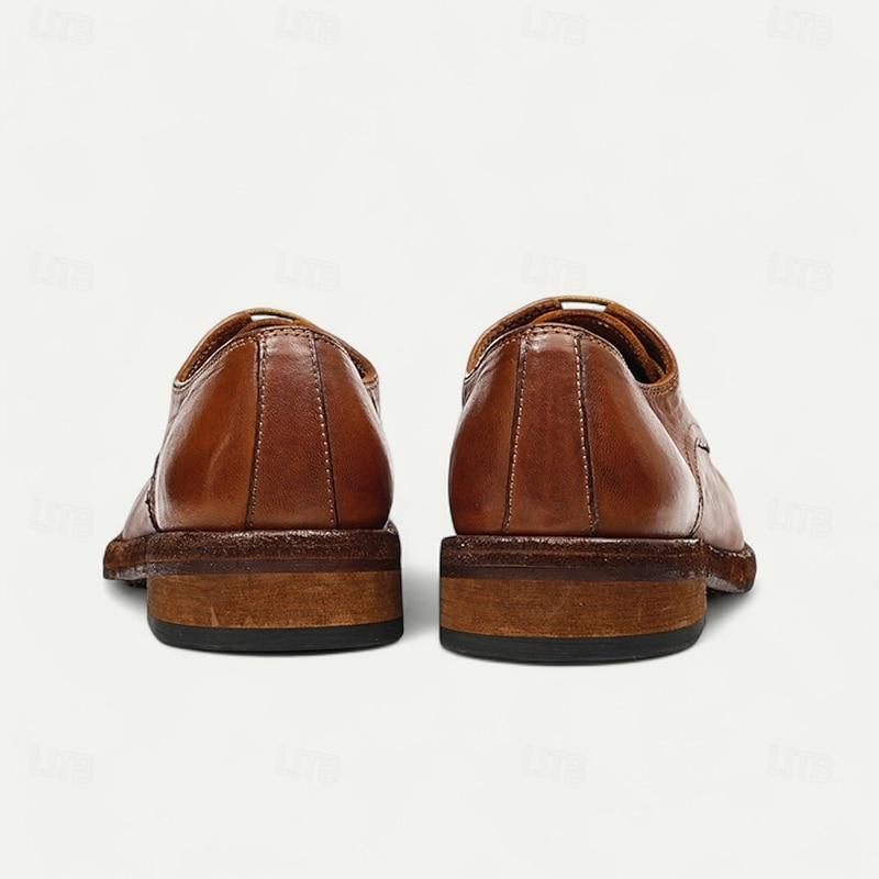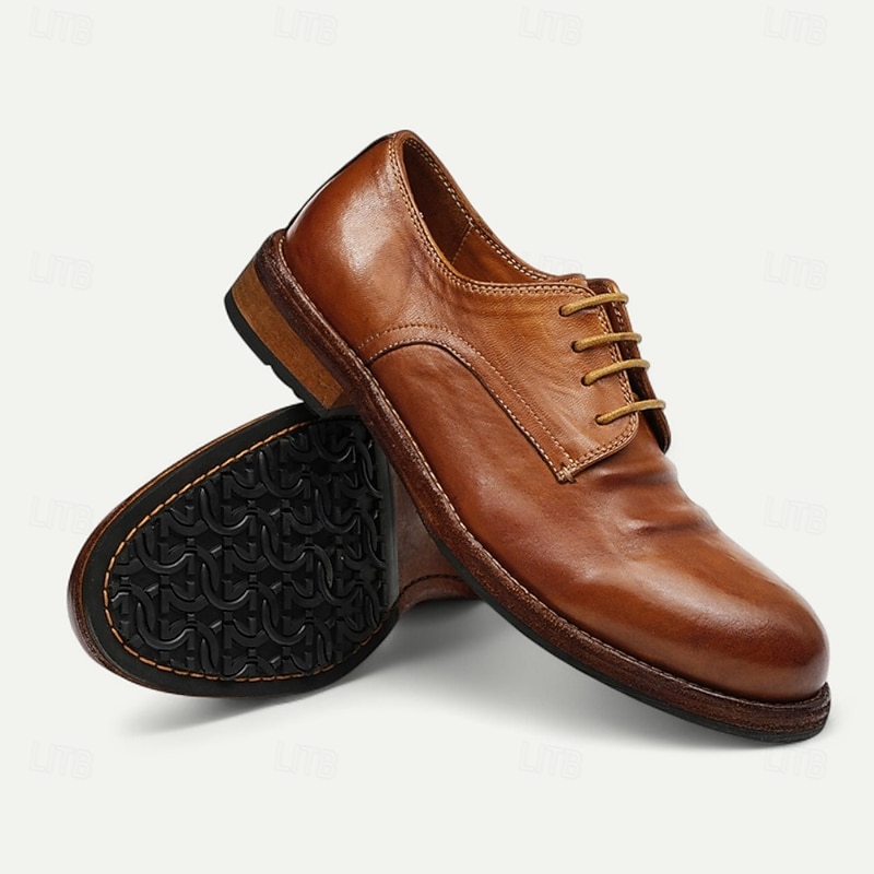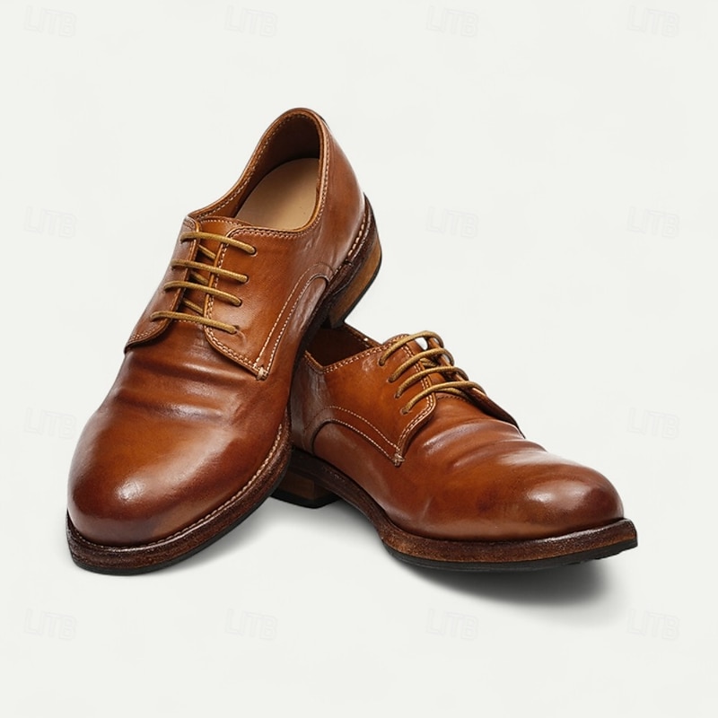 Men's Tan Leather Oxford Shoes with Goodyear Welt Construction - Classic Business Footwear for Office and Formal Occasions 35