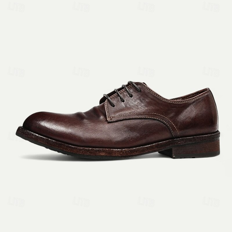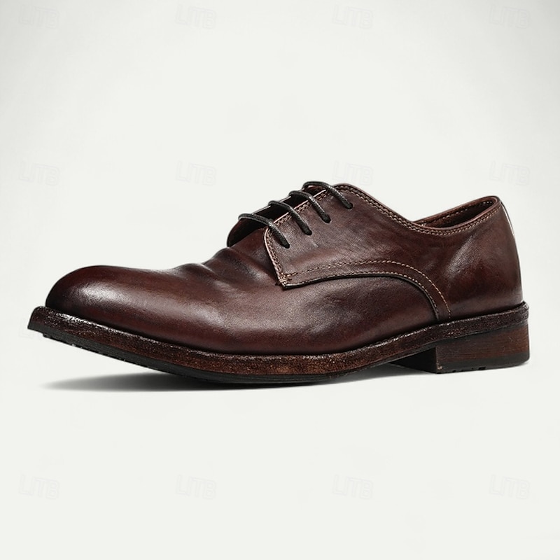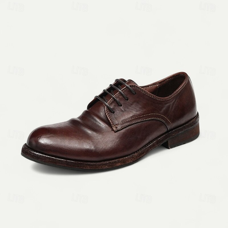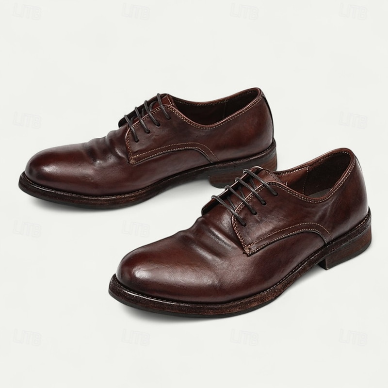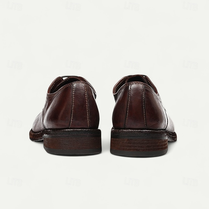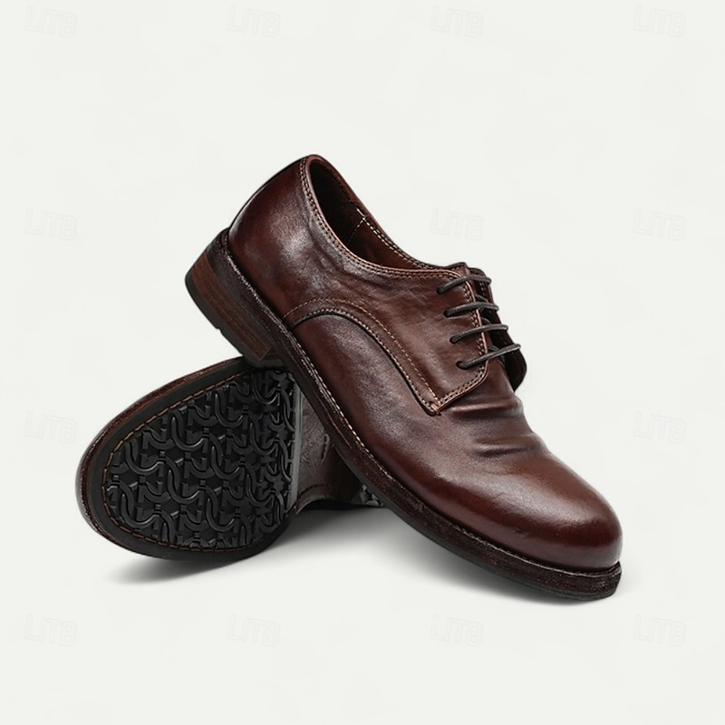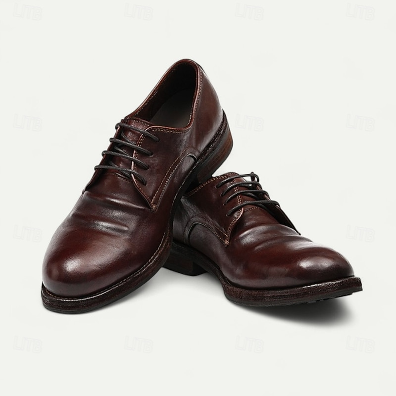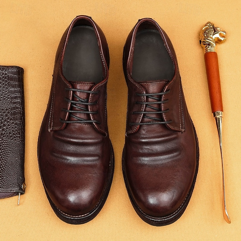 Men's Tan Leather Oxford Shoes with Goodyear Welt Construction - Classic Business Footwear for Office and Formal Occasions 35