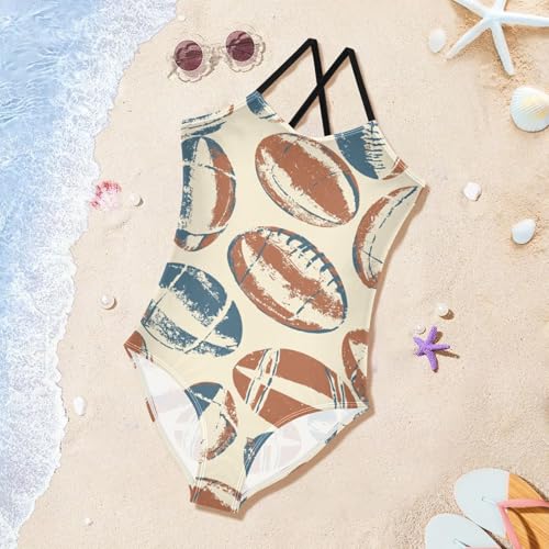 Vintage Brown Rugby Girls Swimsuit One Piece Bathing Suit for Baby Girls' Swimwear 3-10T 1