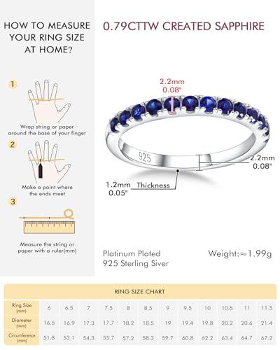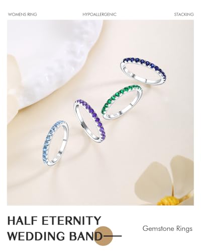 DAYBYDAY Birthstone Band Rings for Women, 925 Sterling Silver Moissanite/Sapphire/Emerald/Half Eternity Ring, 2.2mm Thin Stackable Wedding Band Anniversary Rings for Her 4