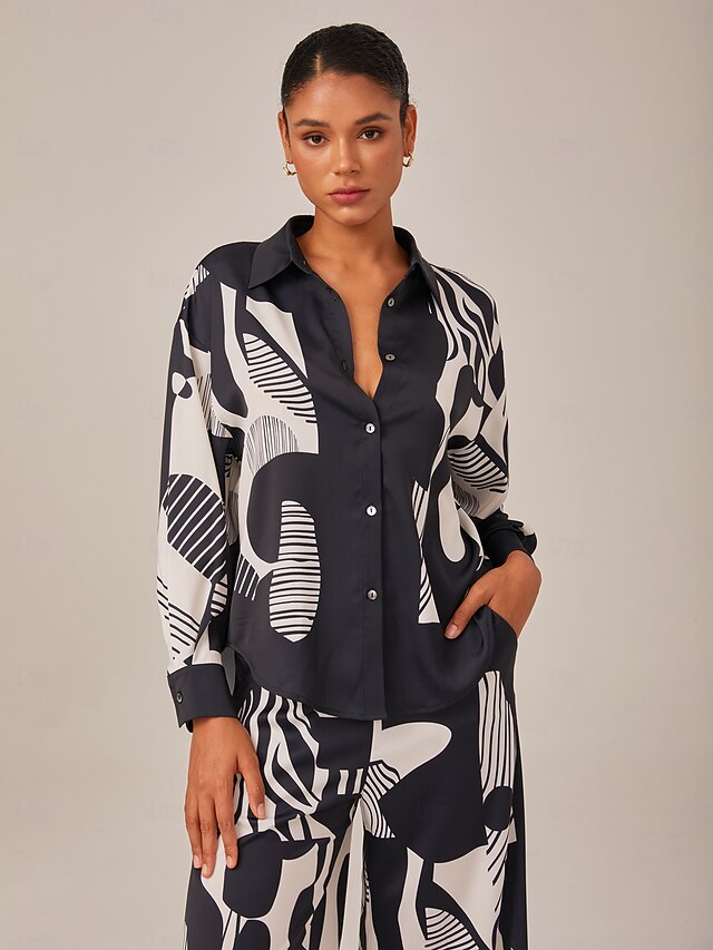 Black And White Geometric Satin Shirt 2