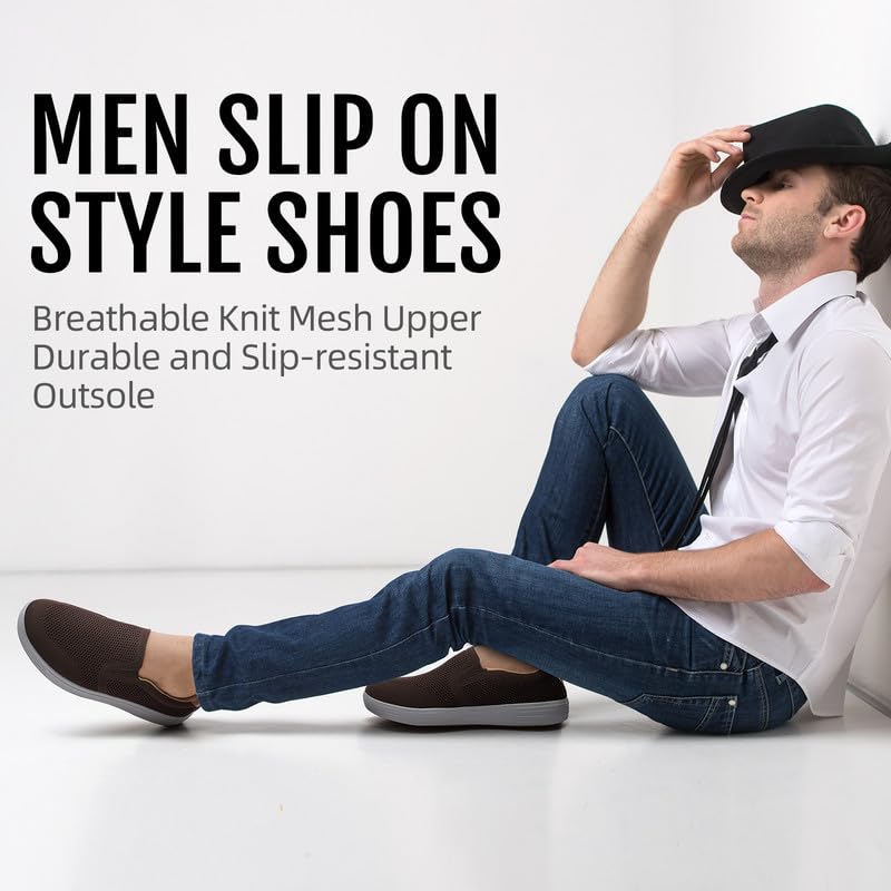 trending ! Puxowe Men's Casual Slip On Walking Shoes Mesh Loafer Fashion Sneakers Size 7.5 US Brown-Deep Gray