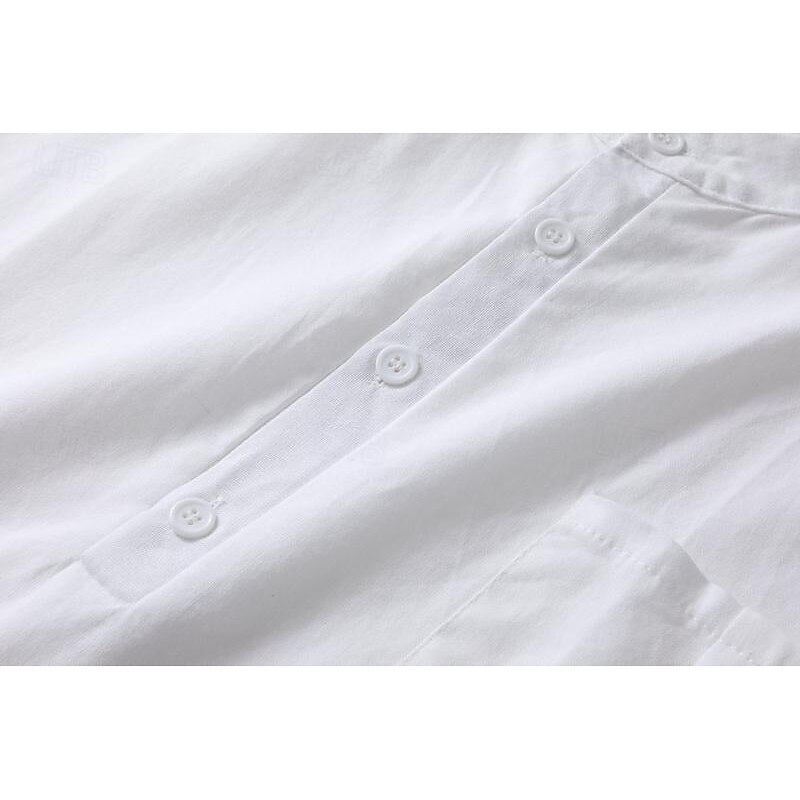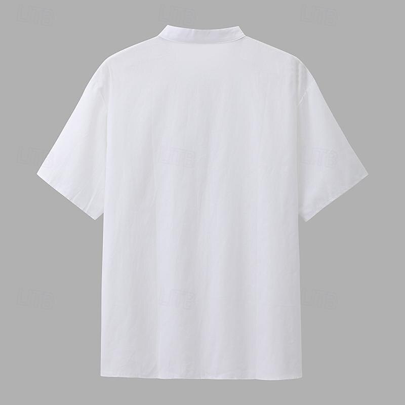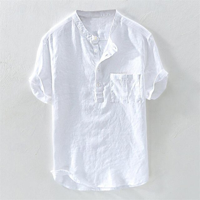 Men's Shirt Chinese Collar Shirt Mandarin Collar Shirt Popover Shirt Casual Shirt Plain Vacation Street White Yellow Sky Blue Green Short Sleeve Band Collar Summer Clothing Apparel Button-Down 15