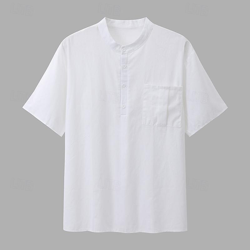 Men's Shirt Chinese Collar Shirt Mandarin Collar Shirt Popover Shirt Casual Shirt Plain Vacation Street White Yellow Sky Blue Green Short Sleeve Band Collar Summer Clothing Apparel Button-Down 18