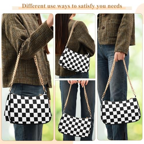 Clutch Tote Handbags with Removable Chains and Zipper Closure White and Black Checked Shoulder Purse Hobo Handbag for Women 5