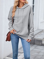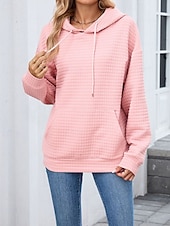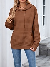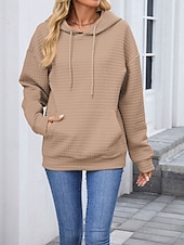 More information about Women's Texture Blouse Pullover Hoodie Sweatshirt Plain Streetwear Casual Long Sleeve Hooded Regular Tops Street Holiday Going out Pocket Black Pink Brown Khaki Gray Fall