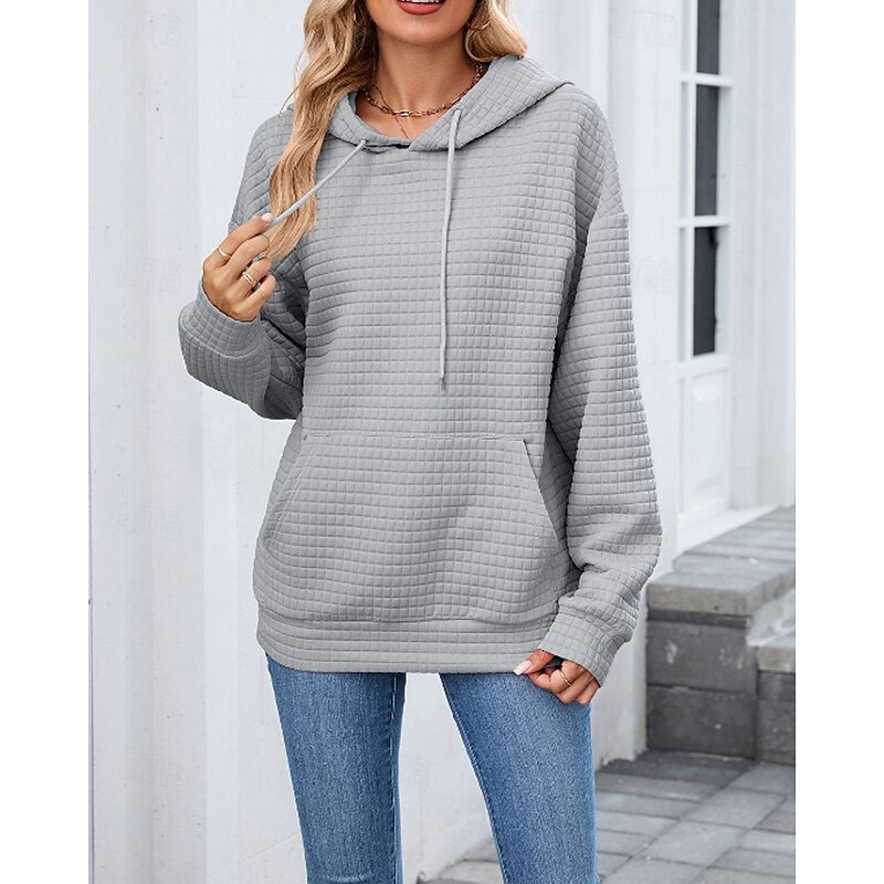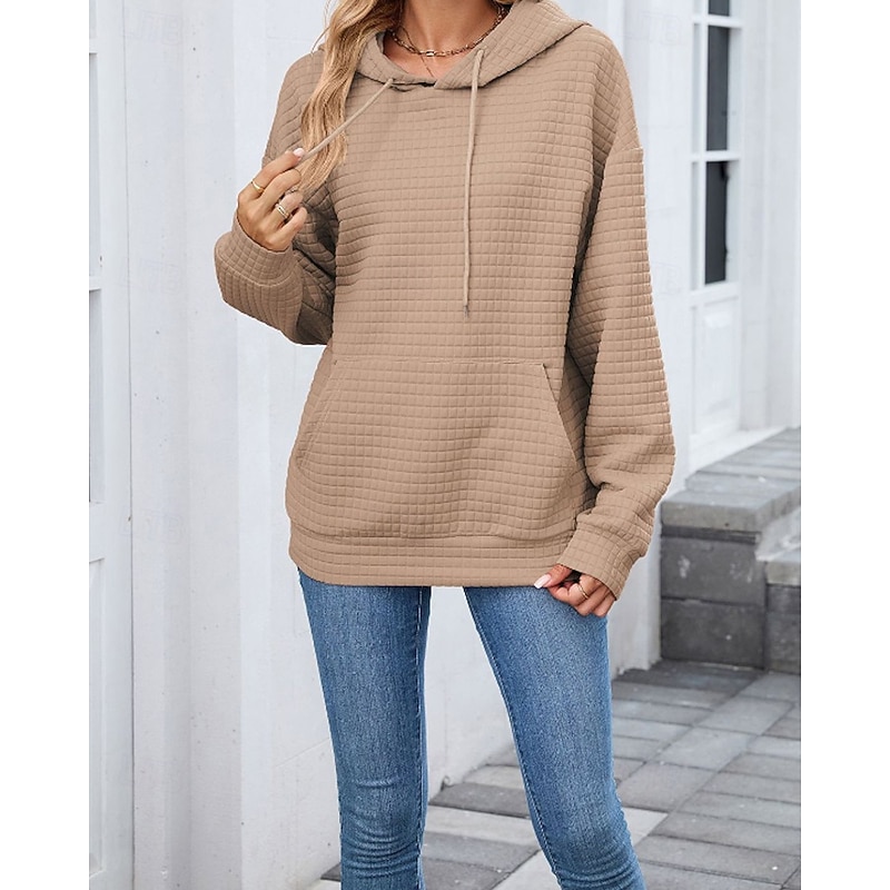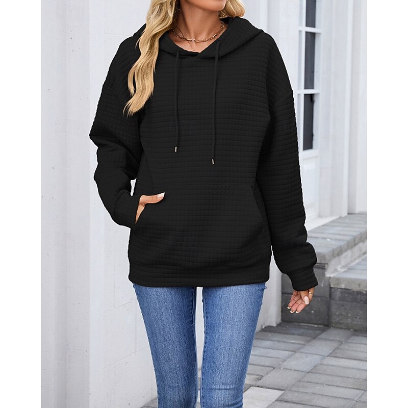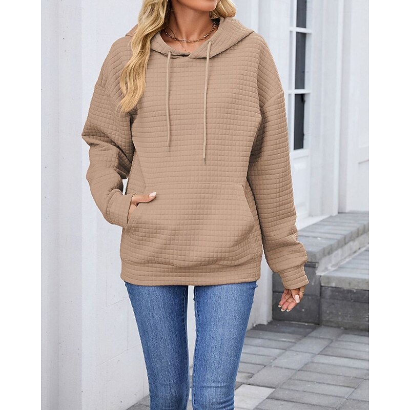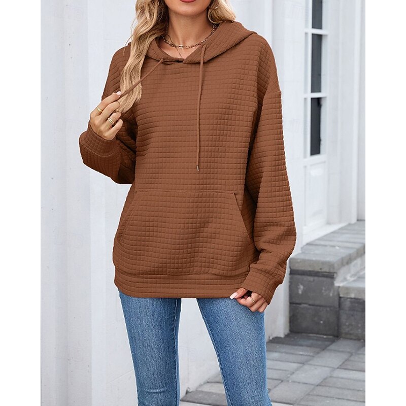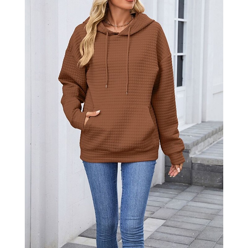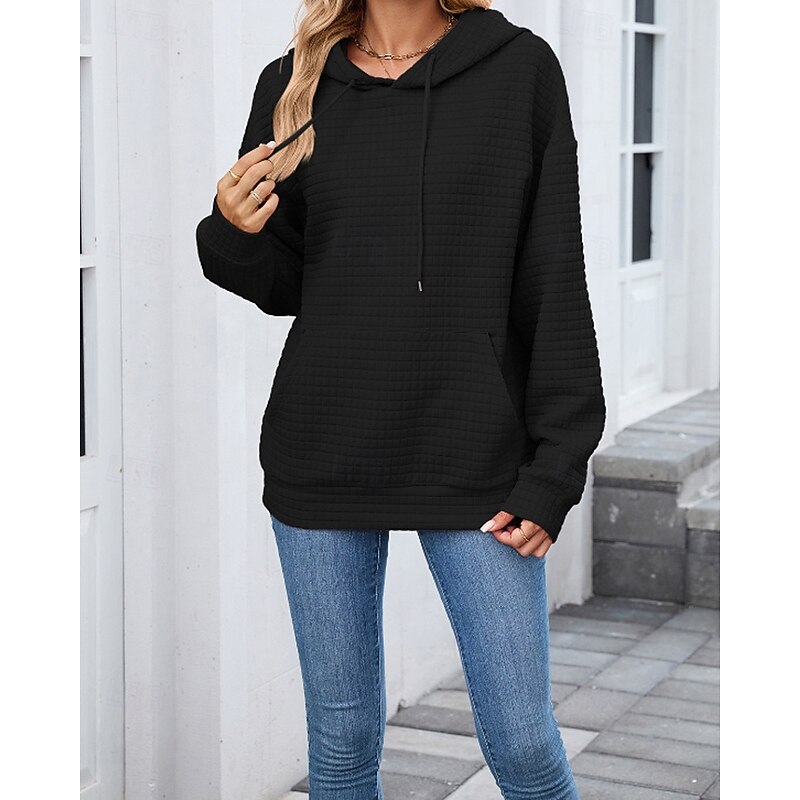 HOT ! Women's Texture Blouse Pullover Hoodie Sweatshirt Plain Streetwear Casual Long Sleeve Hooded Regular Tops Street Holiday Going out Pocket Black Pink Brown Khaki Gray Fall