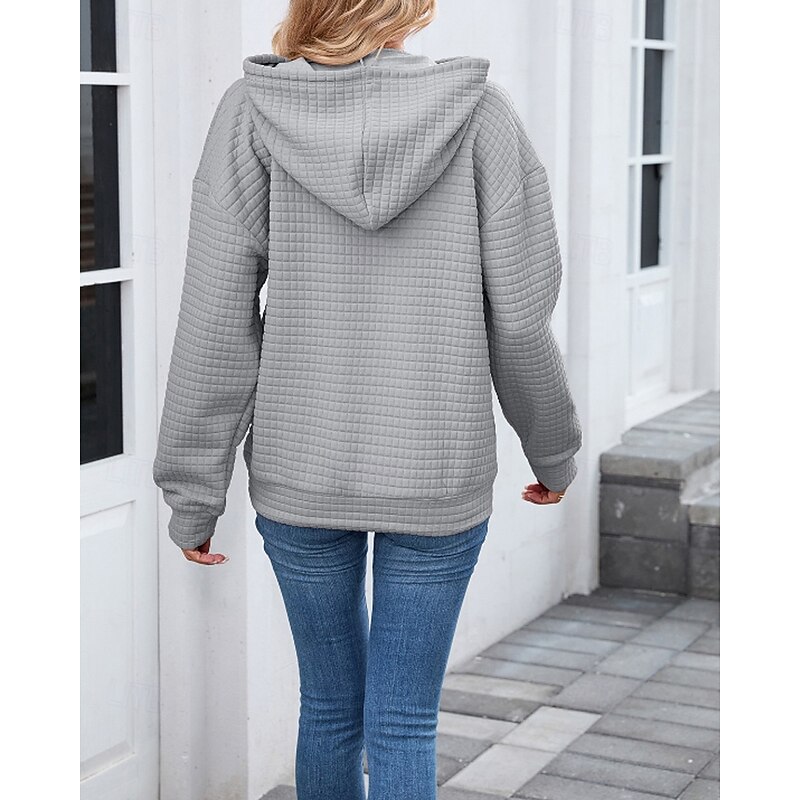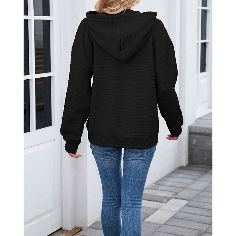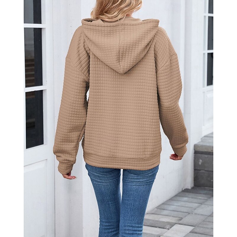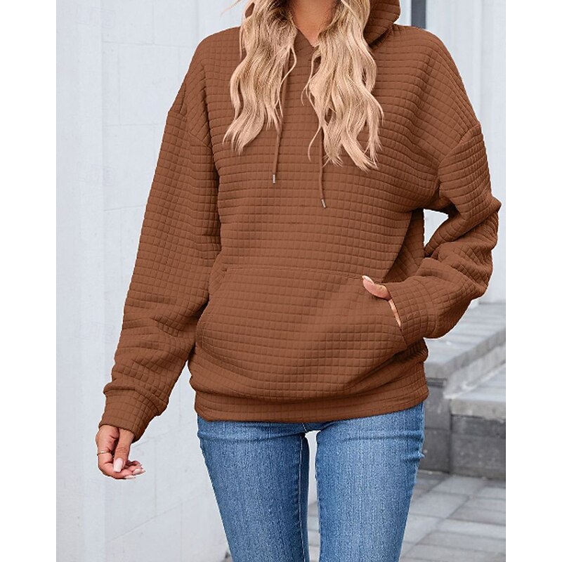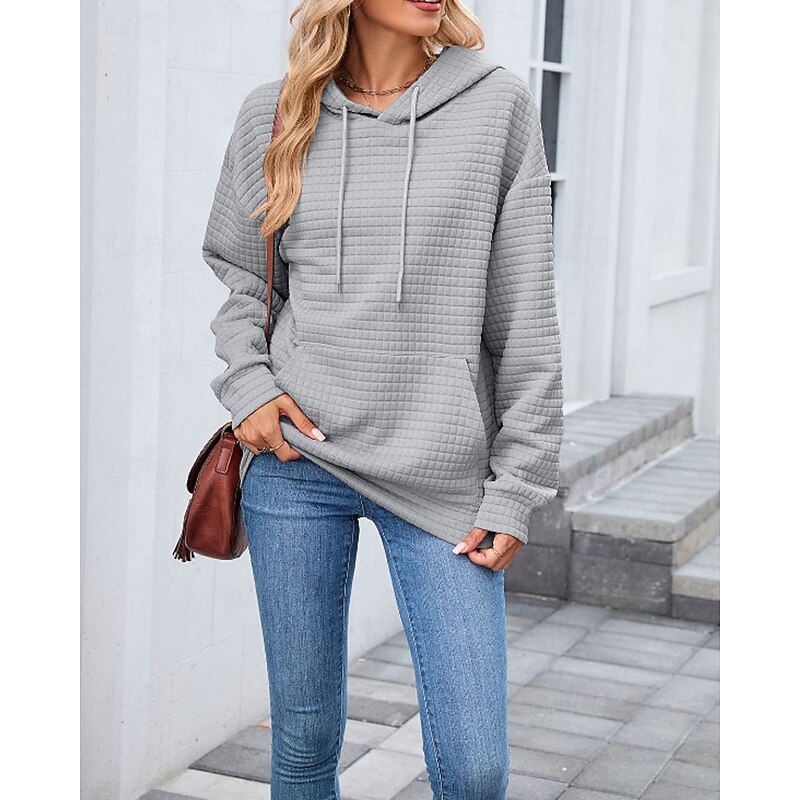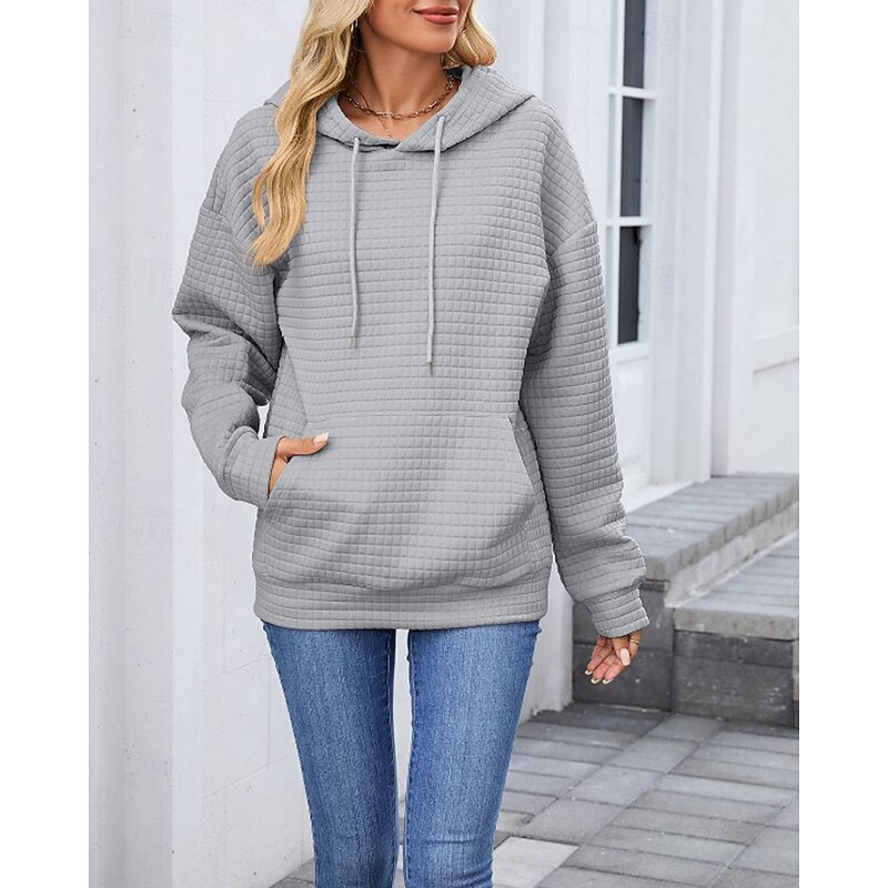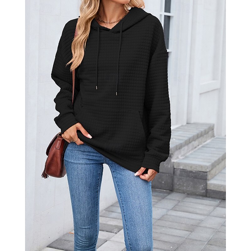 HOT ! Women's Texture Blouse Pullover Hoodie Sweatshirt Plain Streetwear Casual Long Sleeve Hooded Regular Tops Street Holiday Going out Pocket Black Pink Brown Khaki Gray Fall