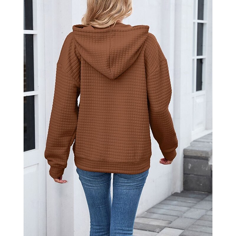 Women's Texture Blouse Pullover Hoodie Sweatshirt Plain Streetwear Casual Long Sleeve Hooded Regular Tops Street Holiday Going out Pocket Black Pink Brown Khaki Gray Fall 25
