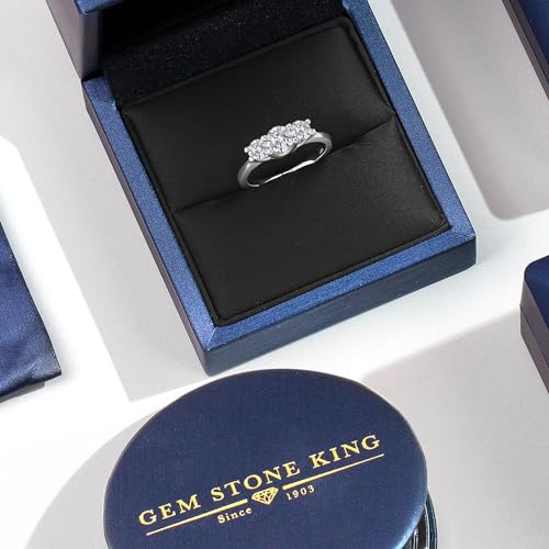 HOT ! Gem Stone King 1.04 Cttw 14K White Gold White Lab Grown Diamond 3-Stone Engagement Ring | Round 5MM and 4MM | Three Stone Wedding Anniversary Promise Ring For Women