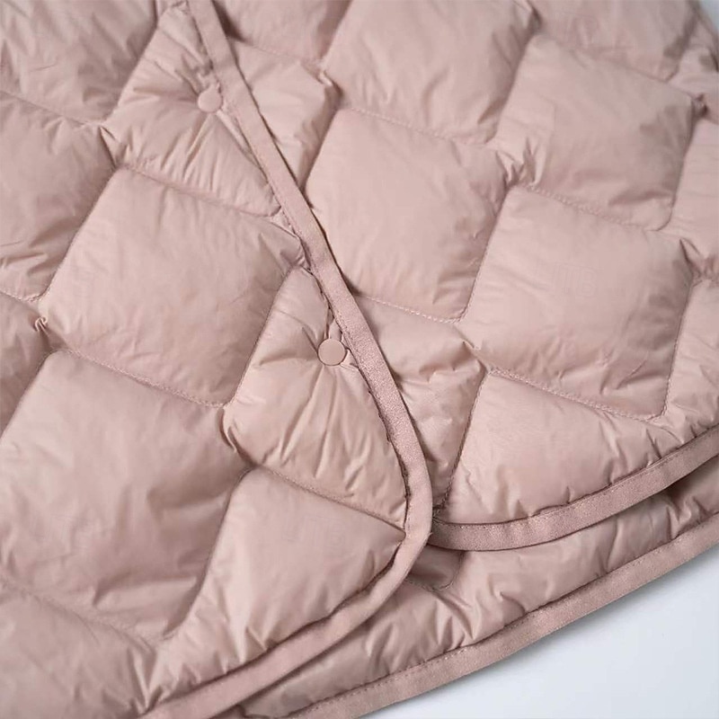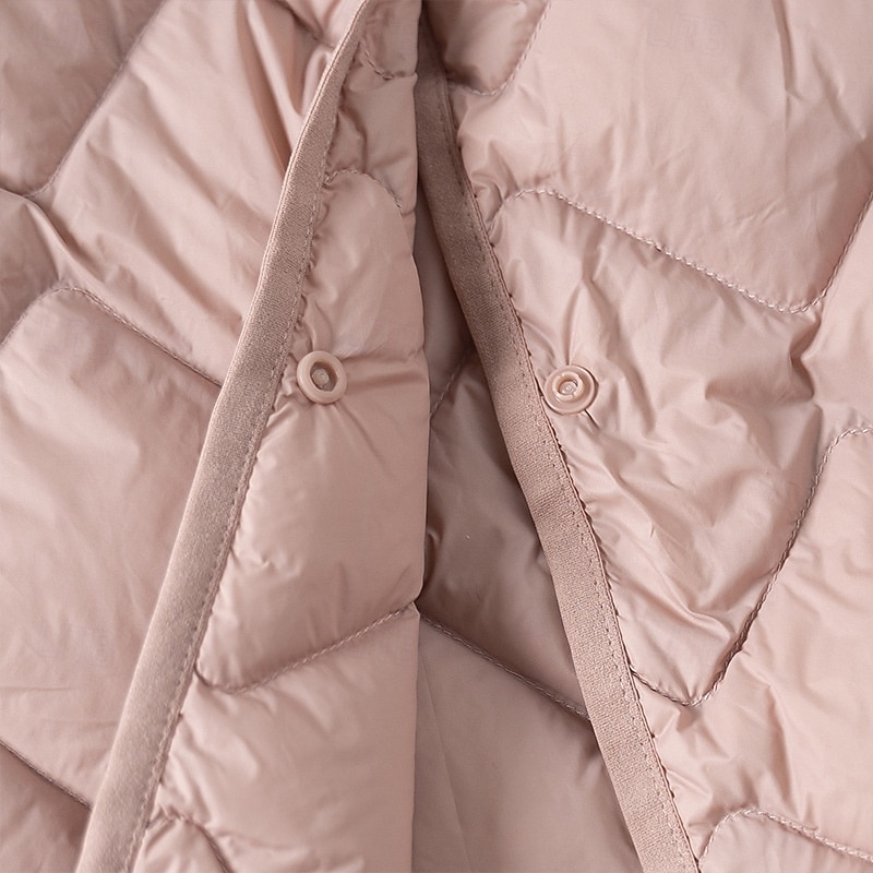 Women's Down Jacket Warm Comfortable Buttons Casual Plain Holiday Casual Daily Weekend Single Breasted Regular V Neck Regular Fit Long Sleeve Outerwear Pink Dark Green Khaki Fall Winter 8