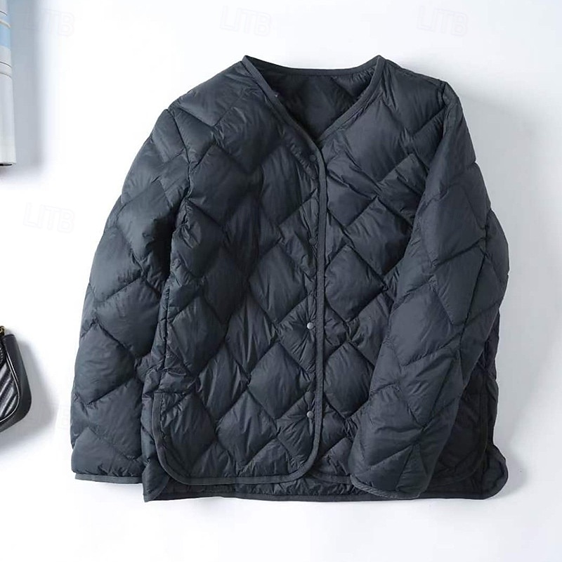 More information about Women's Down Jacket Warm Comfortable Buttons Casual Plain Holiday Casual Daily Weekend Single Breasted Regular V Neck Regular Fit Long Sleeve Outerwear Pink Dark Green Khaki Fall Winter