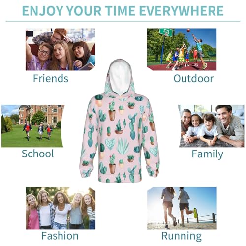 Green Cacti and Succulents Kid Hoodies Boys Sweatshirts Girls Pullover with Pocket 7