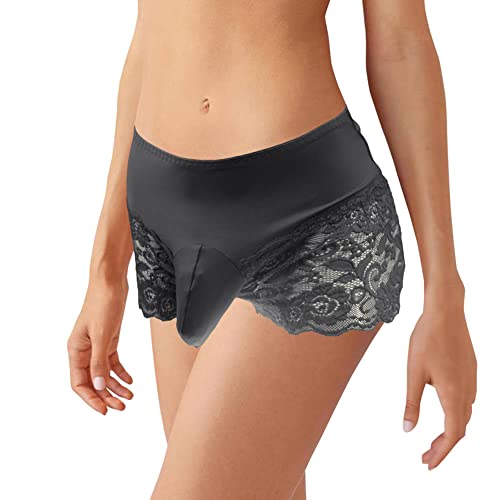 Men's Lace Briefs Sissy Pouch Underwear Crossdress Breathable Stretch Cotton Lace Panties Large Hip Wrap Boxers 1