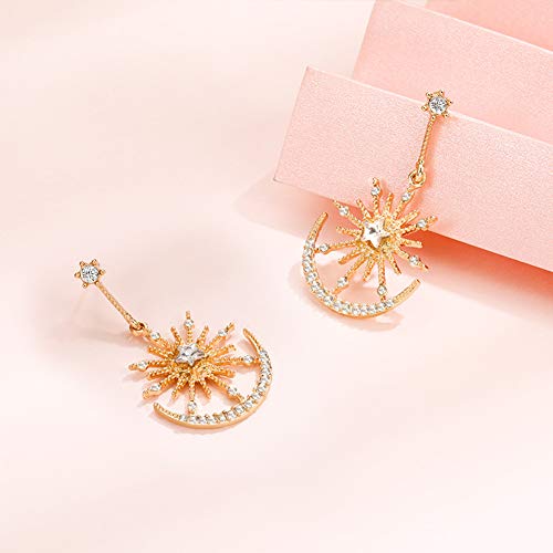 More information about Luxury Cubic Zirconia Moon and Star Drop Earrings for Women, Fashion Simulated Diamond Long Dangle CZ Star Tassel Earring Set