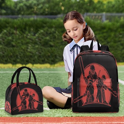 Nisza Kids School Backpack Set, Cricket Players Action Cartoon Sport Bookbag for Girls Boys Elementary School Bags with Lunch Bag 1
