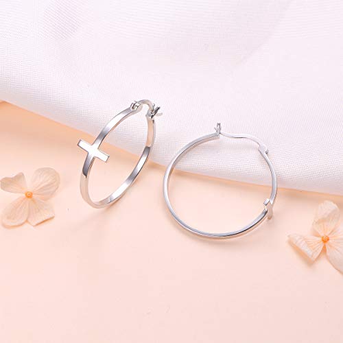 More information about S925 Sterling Silver Jewelry Classic Hoop Cross Earrings for Women Teenage