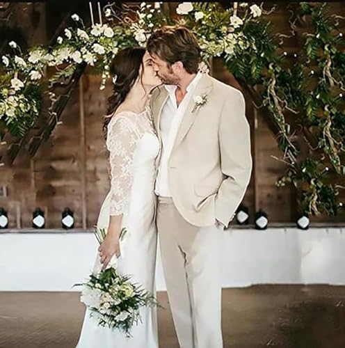 Men's 2 Piece Linen Suit for Men Slim Fit Wedding Retro Formal Beach Wedding Summer Groomsmen Linen Blazer Pants Suit Set 7