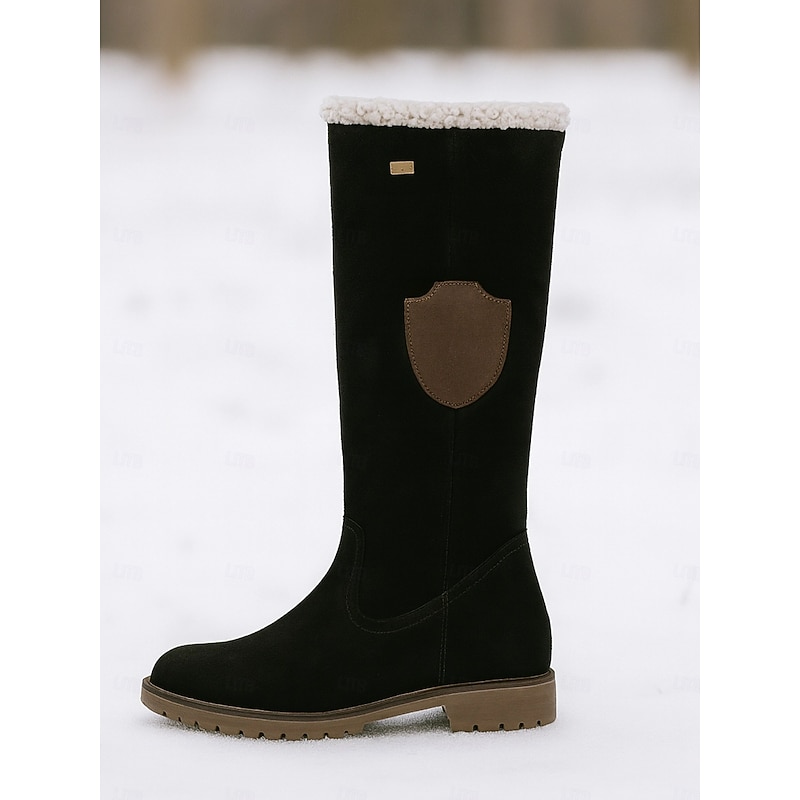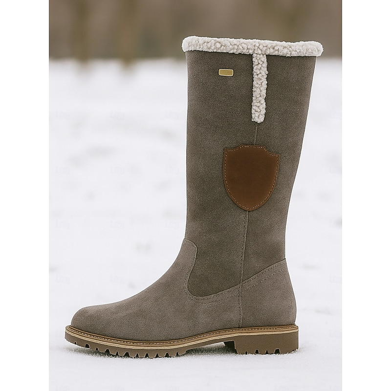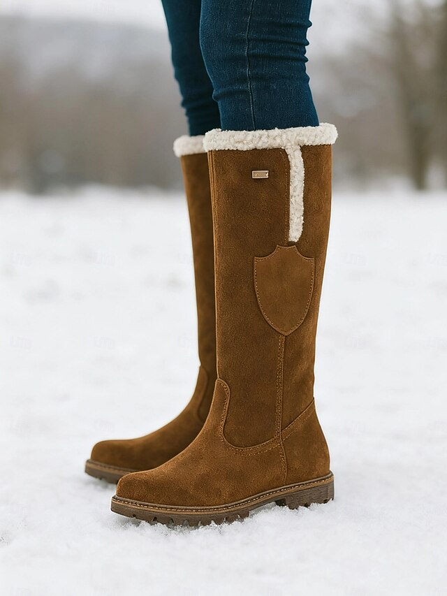 More information about Women's Suede Knee-High Boots with Fleece Lining - Brown Winter Casual Boots for Outdoor Activities