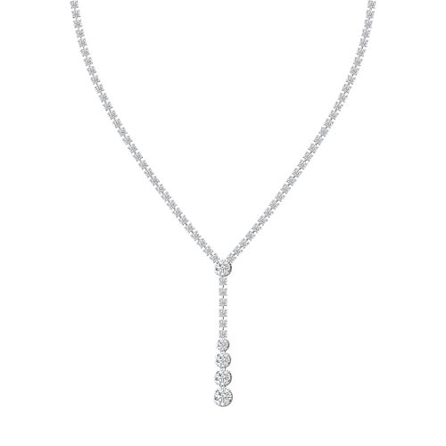 More information about Moissanite Tennis Necklace-for-Women-Wedding-Prom-Jewelry: Lariat 18K White Gold Plated 925 Sterling Silver Rhinestone Simulated Diamond Pendant Long Chain Y Necklaces - Crystal Bridal Gifts