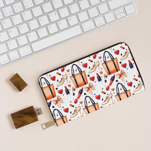 • Material Composition: This Heels Lipstick Handbag Print leather wallet is crafted from quality PU leather with a soft inner lining. Designed to offer a sleek and comfortable grip, it combines the classic look of leather wallets for women with a lightweight and eco-conscious build