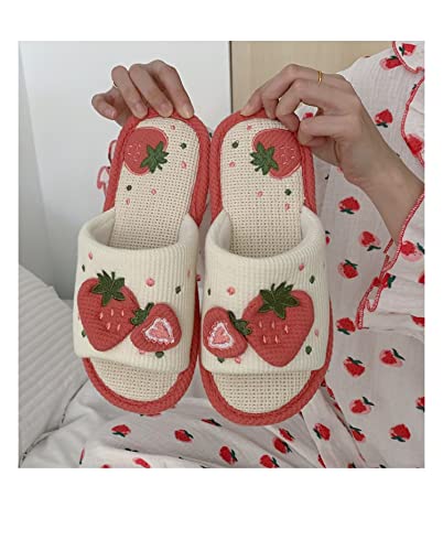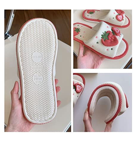 Cute Strawberry Slippers Indoor Linen House Slippers for Women Cotton Home Floor Slippers Open Toe Non-Slip Slides 7