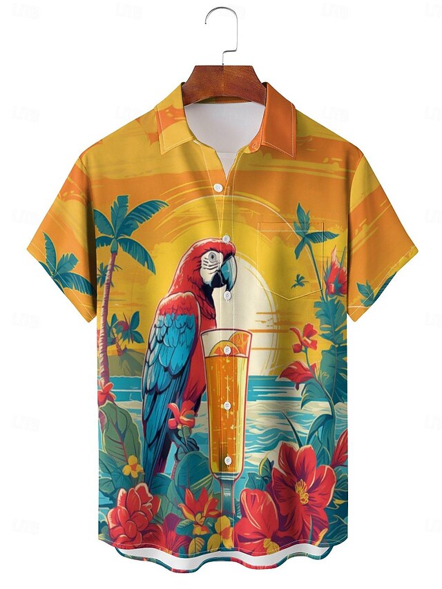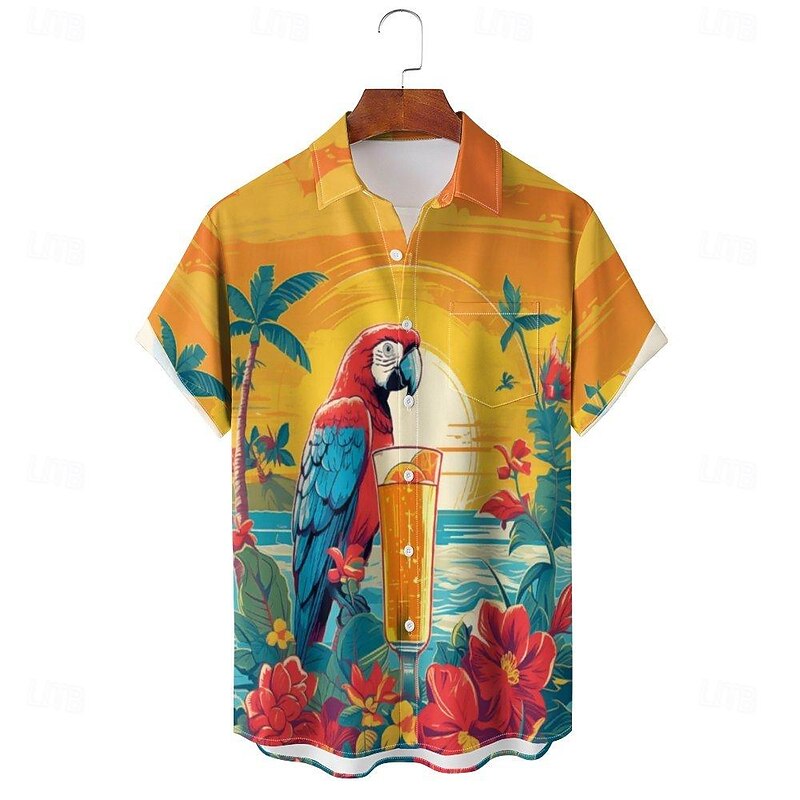 More information about Men's Button Up Shirt Printed Shirts Short Sleeve Casual Going out Weekend Spring & Summer Shirt Collar Printing Orange