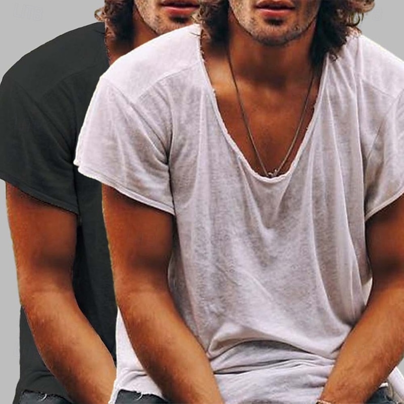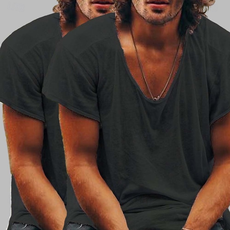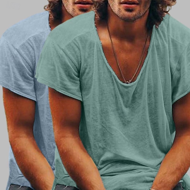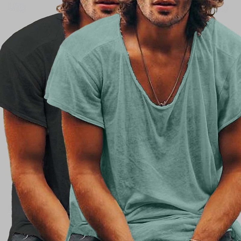 More information about Men's T Shirt Casual Style Bamboo T-shirt Short Sleeve Crew Neck Spring & Summer All Seasons Plain Fashion Casual Comfortable 2 Piece 2 Pack Raw Edge Street Casual Holiday Blue / Green Black+Black