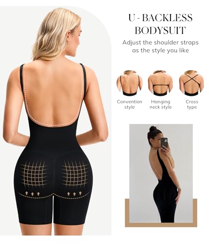 • Backless Shapewear for women. Our shapewear bodysuit are designed to effectively tighten the waist, help to achieve an hourglass figure. Made from lightweight, breathable nylon and spandex.The soft, ultra stretch fabric adapts to your body's curve, comfortable for all-day long wearing.With an ergonomic hips lift design, backless bodysuits for women tighten and lift your hips,give you a bigger peach hips.