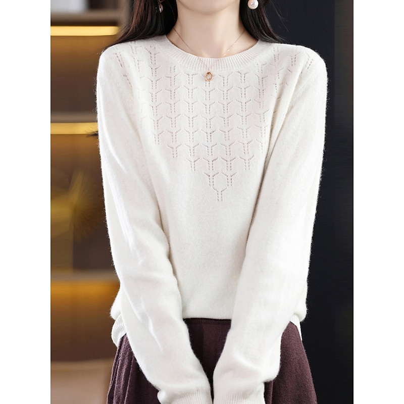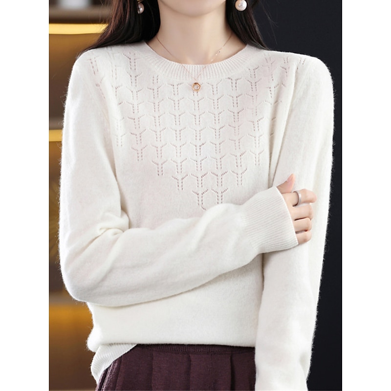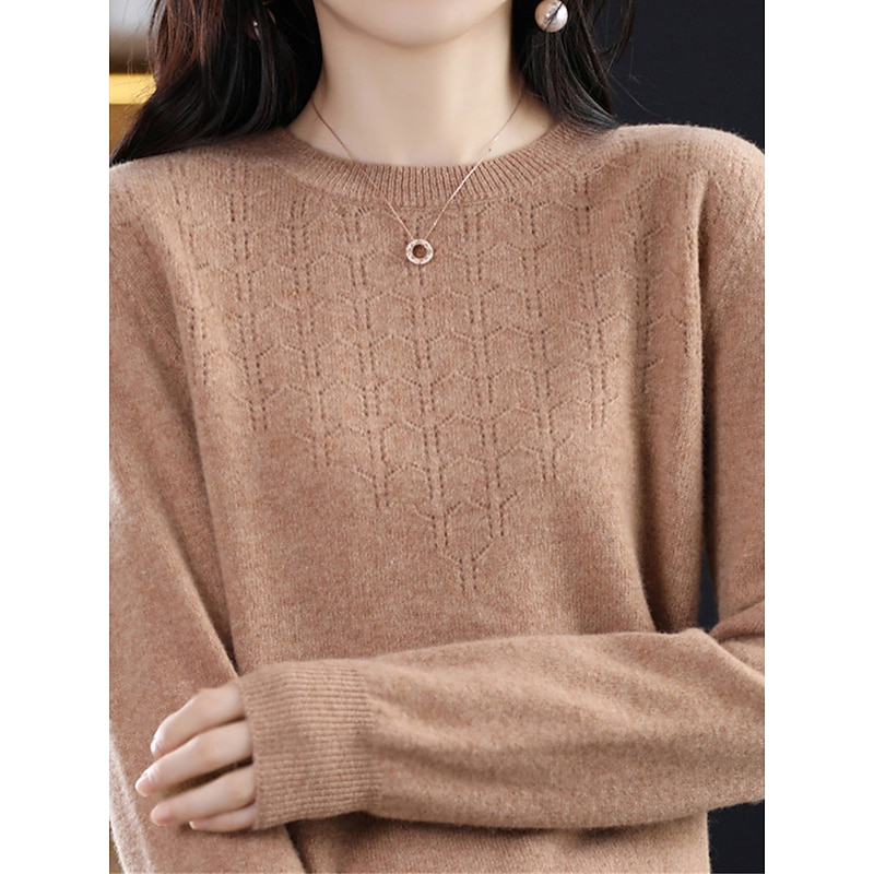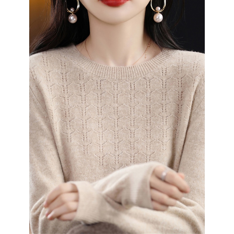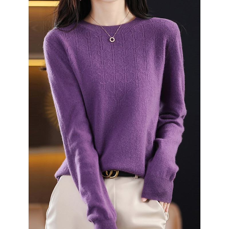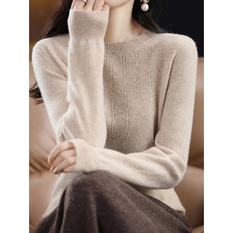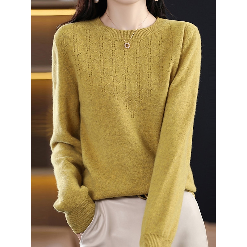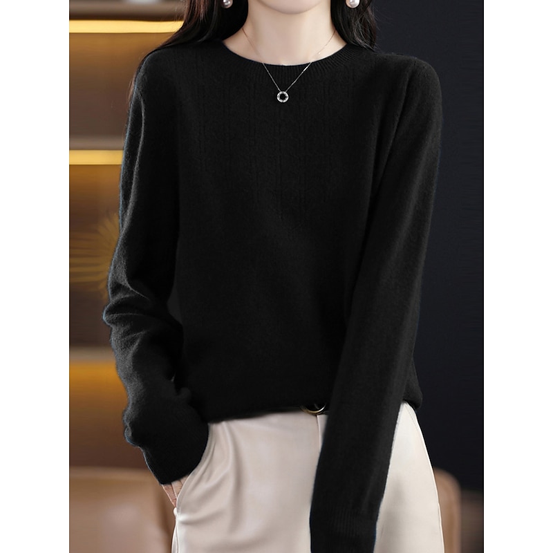 : Crafted from high-quality polyester knit, this women's pullover sweater offers a soft, comfortable feel with micro-elasticity, making it ideal for both fall and winter seasons. The ribbed knit texture adds a refined touch to the garment, enhancing its durability and warmth.