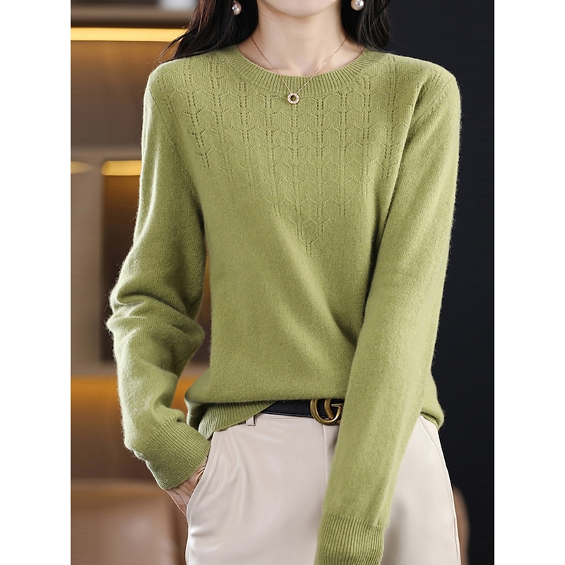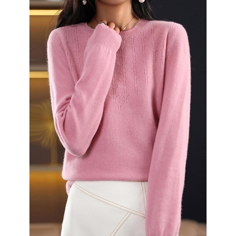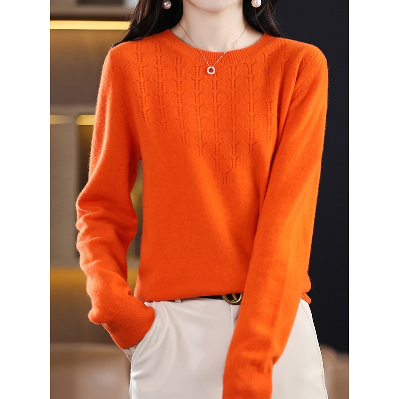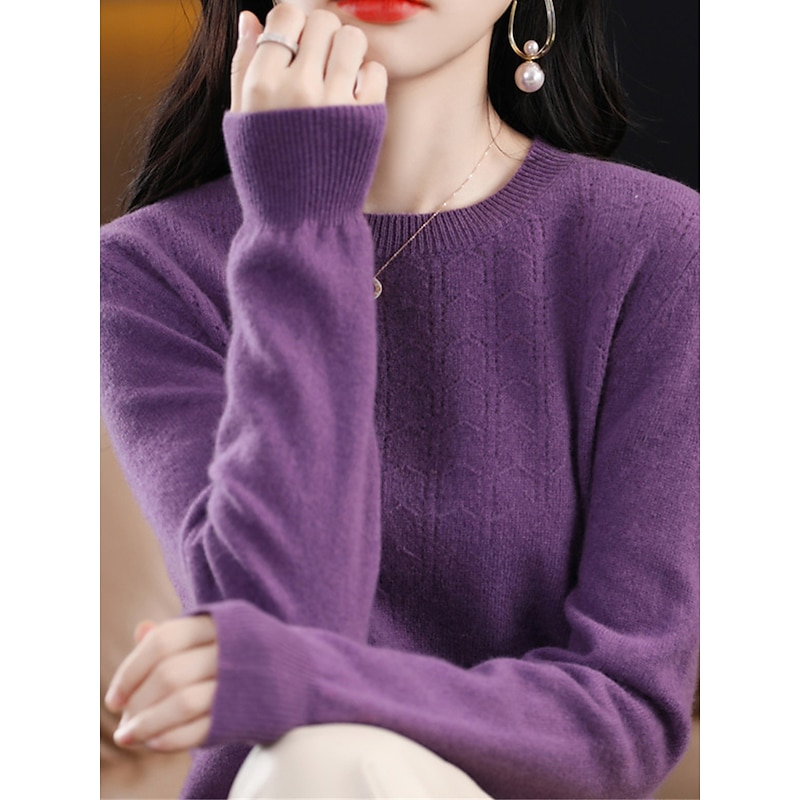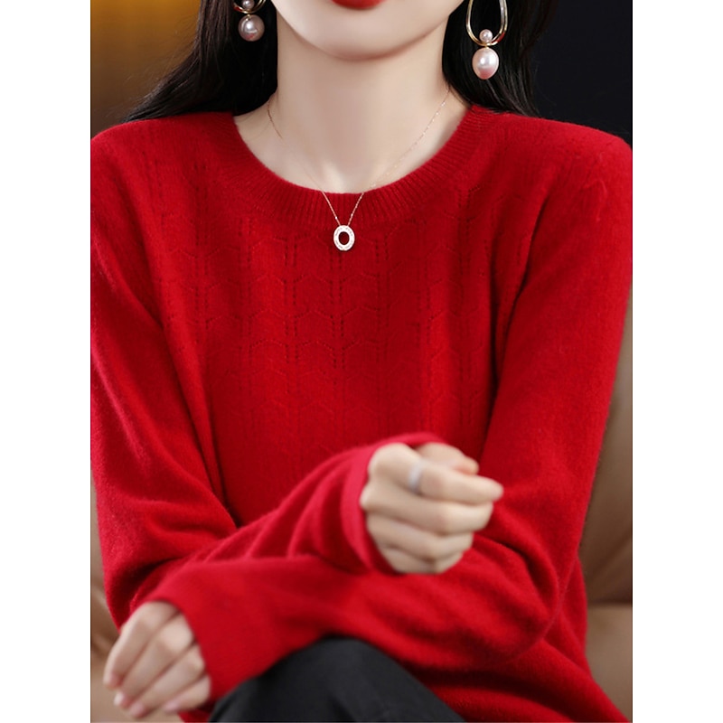 More information about Women's Pullover Sweater Jumper Fashion Streetwear Casual Solid Color Ribbed Crew Neck Knitted Long Sleeve Regular Tops Knit Outdoor Home Daily Cherry Red Shrimp Pink Fall Winter
