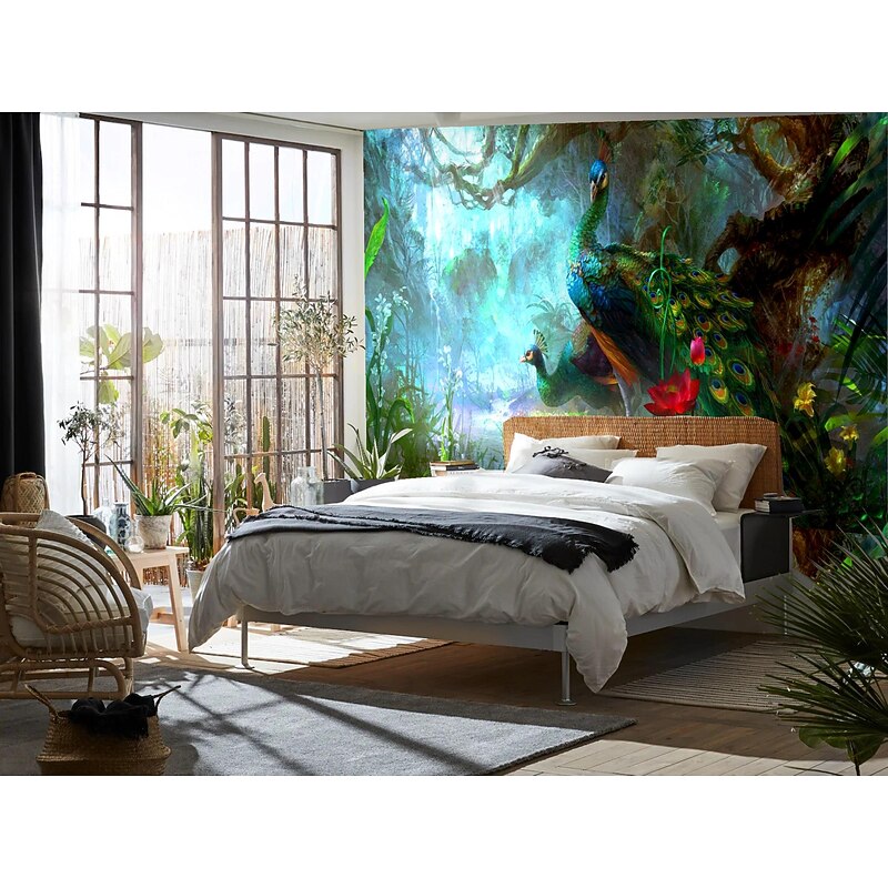 Mural Wallpaper Wall Sticker Covering Print Peel and Stick Removable Bamboo Peacock Bird Canvas Home Décor 2