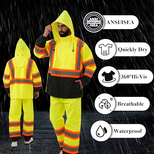 Hi Vis Rain Jackets for Men Reflective Waterproof High Visibility Class 3 Safety Rain Coat with Black Bottom 2