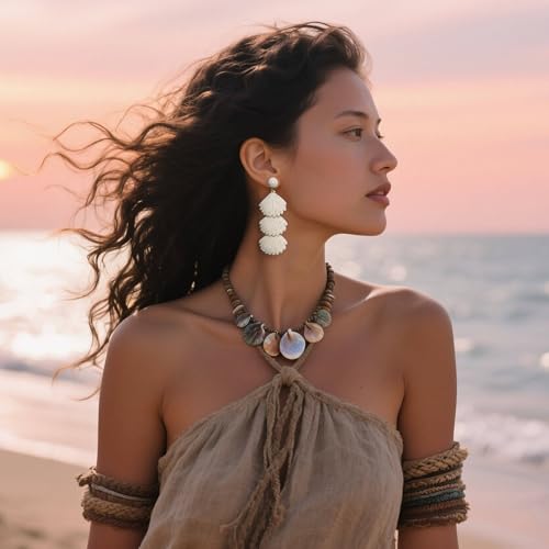 • 【Seashell Vacation Statement Jewelry】 Layered seashell statement earrings designed for beach-hopping adventures. The 3-shell dangle sways with effortless rhythm, complementing linen midi dresses or breezy sundresses. Hypoallergenic materials ensure all-day comfort