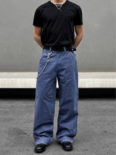 More information about Baggy Jeans for Men Casual Y2k Vintage High Waisted Wide Leg Loose Fit Metal Decorated Hip Hop Streetwear Denim Pants